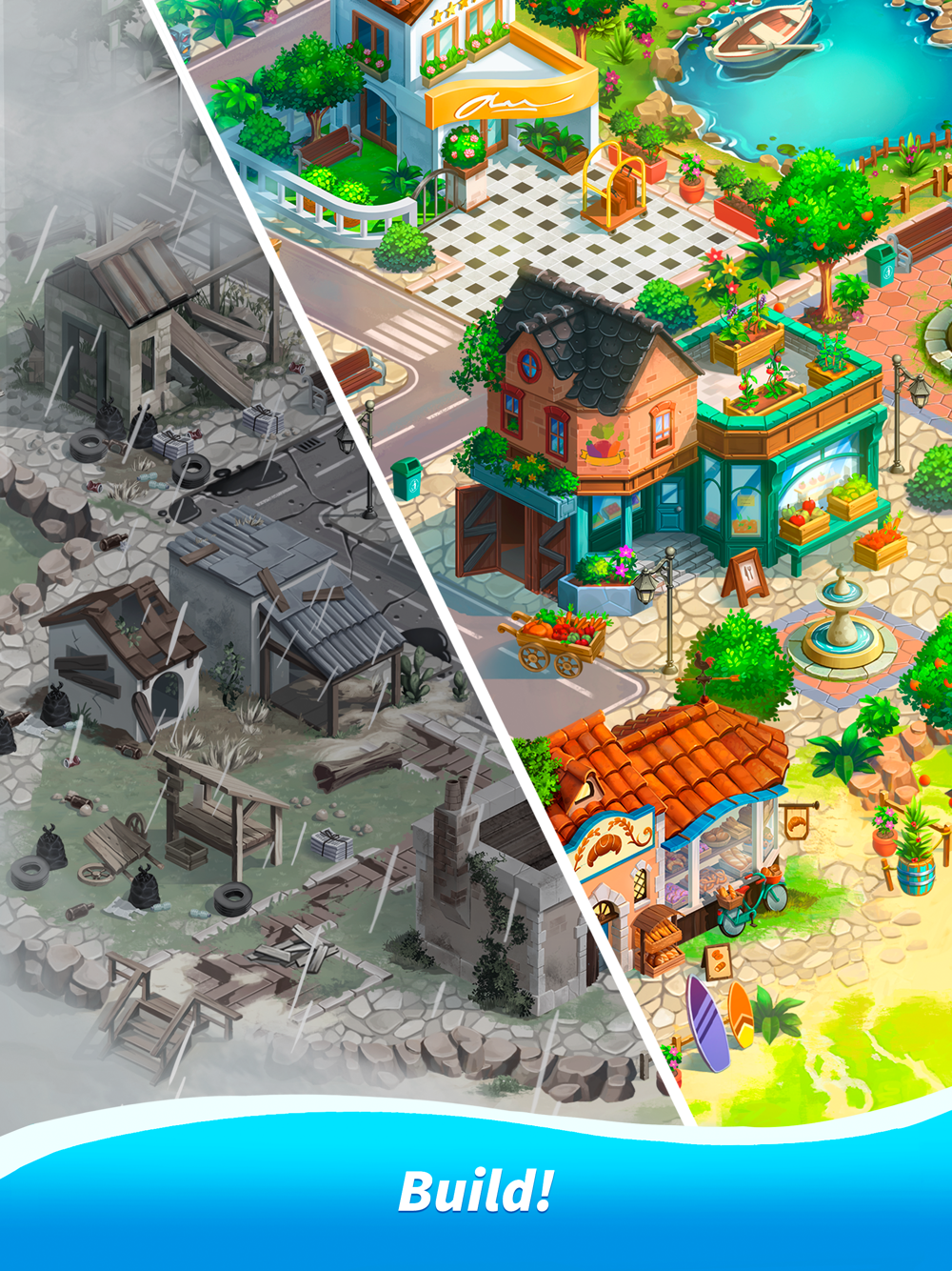 • A storm has ravaged Travel Town - Collect coins and bring the town back to its former beauty!