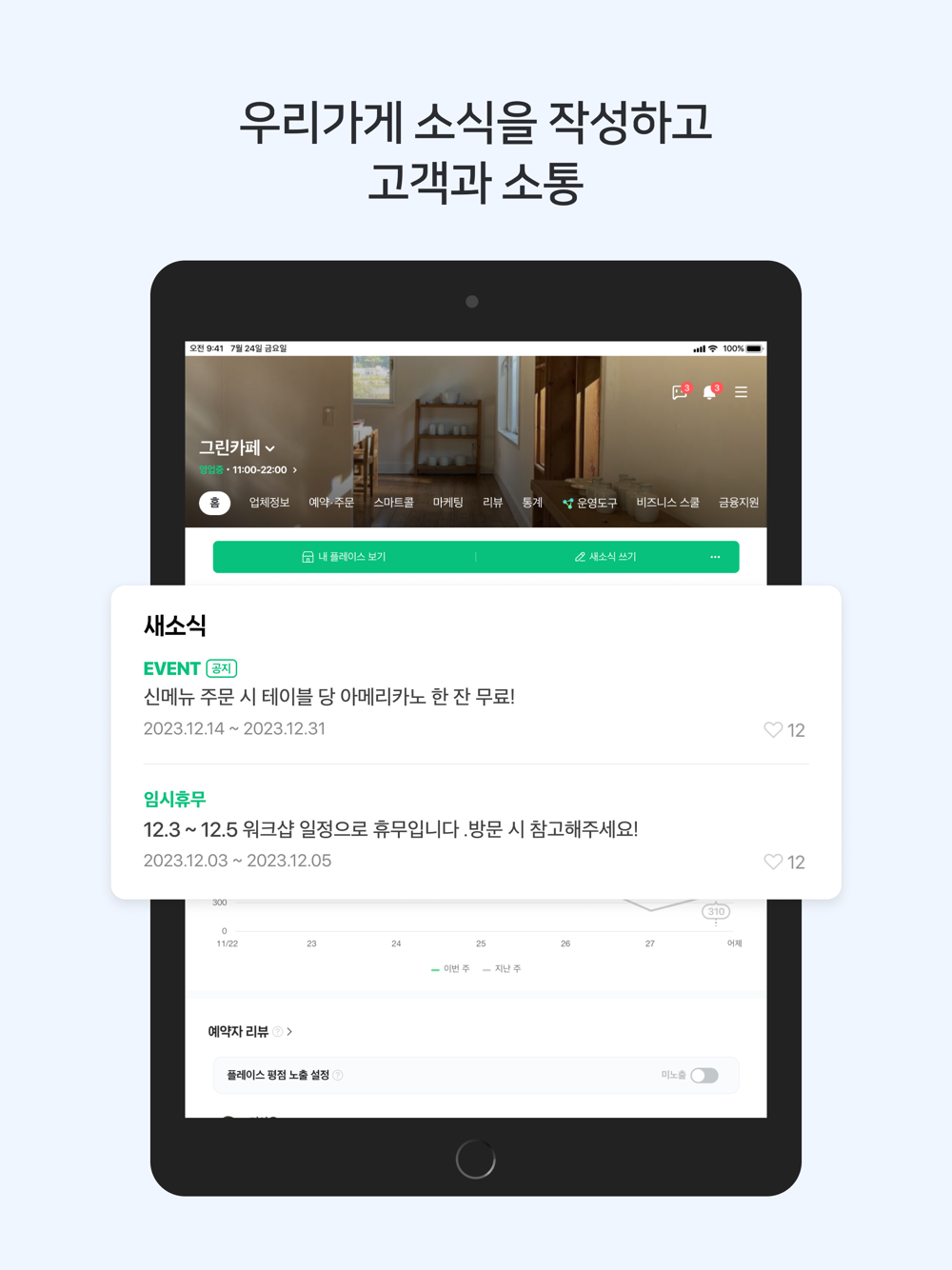 우리 가게 이벤트, 휴무, 신메뉴 소개까지 마케팅 효과 톡톡!
