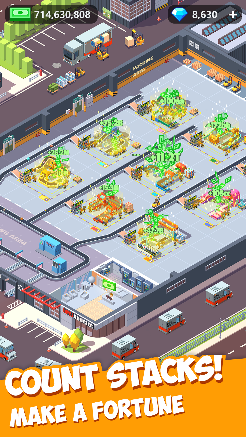 Start as a small courier and become an express giant. Build the packing machine to work on fragile, fresh goods, etc. and satisfy customers’ demands, steadily expand your business and build a career. Purchase more vans to improve transport capacity and train employees, optimizing all your departments. More packages and more business means you'll be rolling in money!