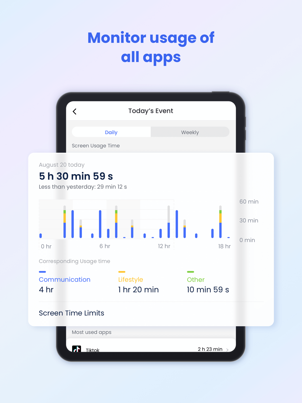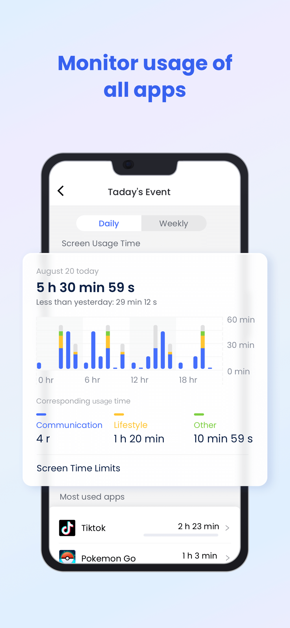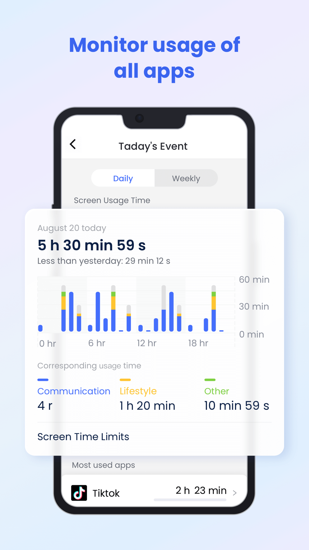 Real-time monitoring - Cast your child's device screen to your phone in real-time to find out what apps they're using in school and the use frequency to prevent them from getting addicted to their phone.