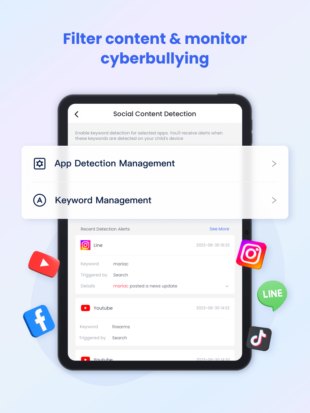 Sync app notification - Real-time sync function helps you to know more about your child's chat on social media like Facebook, Instagram, Messenger, etc. Help your child to stay far away from cyberbullying and online fraud.
