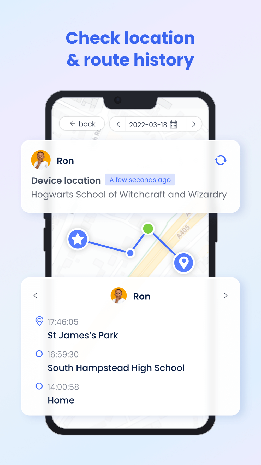 GPS location tracker - With the high-accuracy location tracker, you can track your child's location on the map and see their historical route for the day. Ensure your child is stay safe and they won't visit any high-risk places.