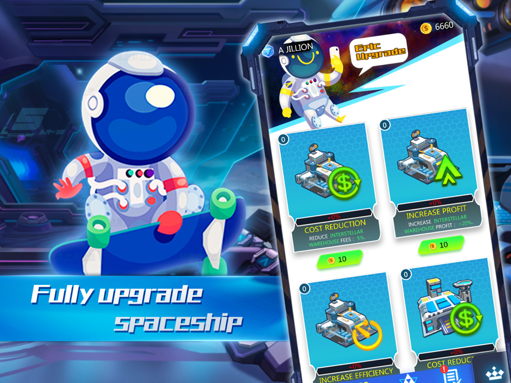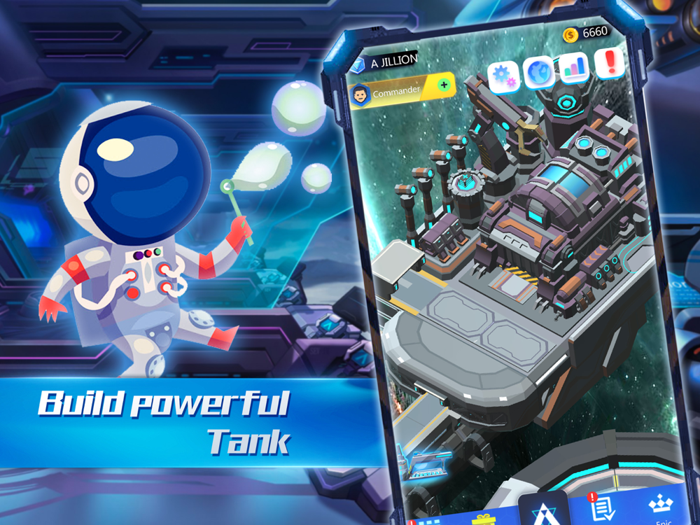 * Hire powerful interstellar commanders to make your spaceship more powerful