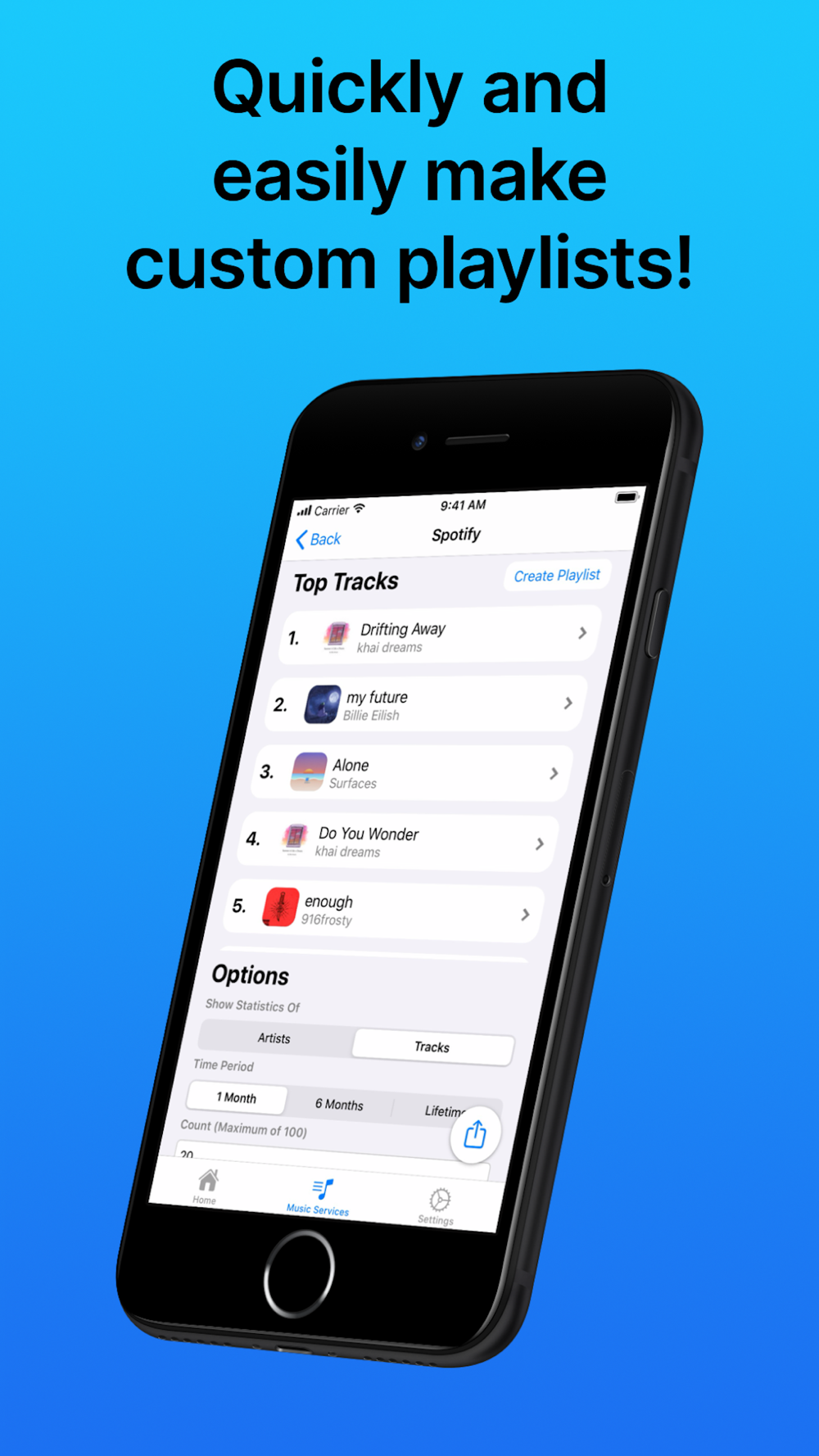 • One-tap playlists: With the press of a button, you can create a playlist of your top tracks and share it with friends.