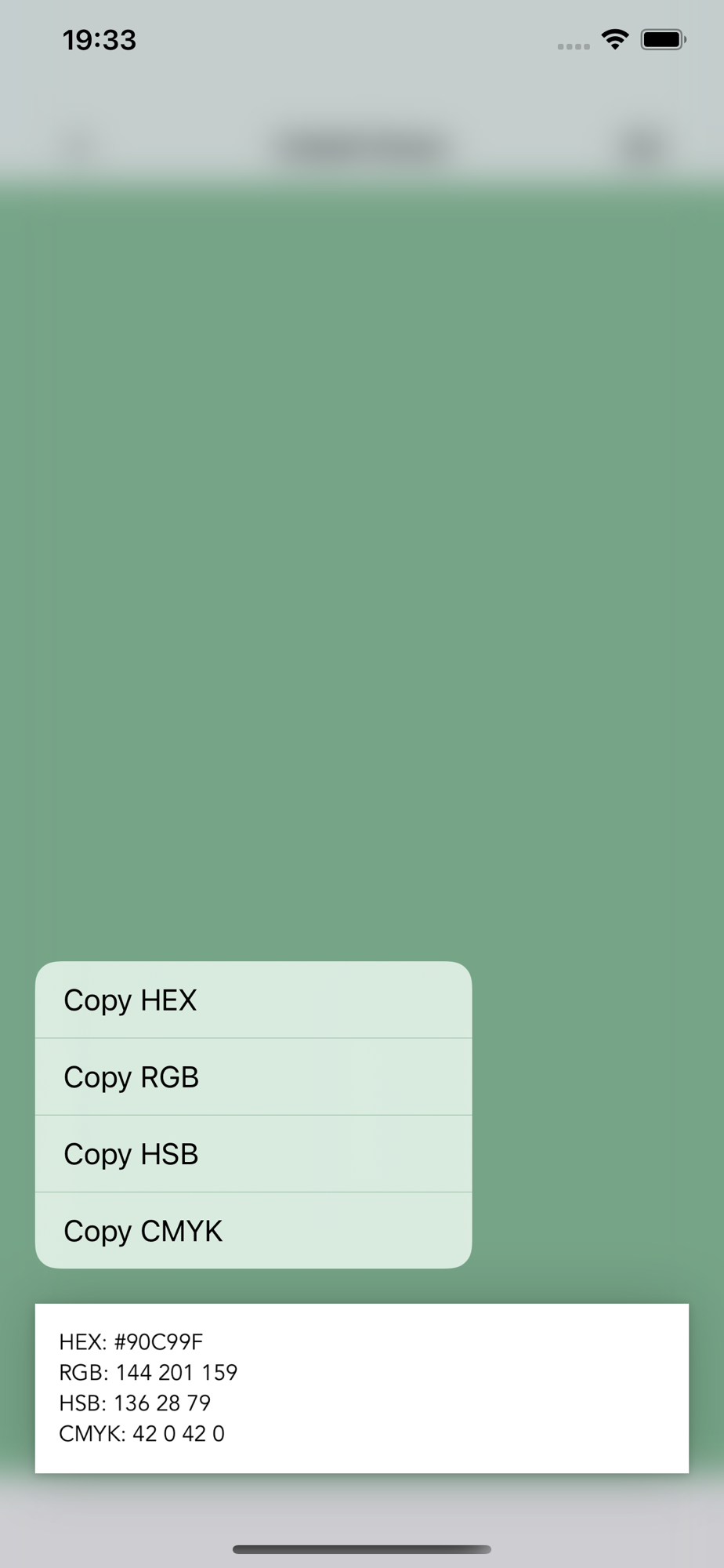 Reference colour values in: RGB, HEX, CMYK or HSB
