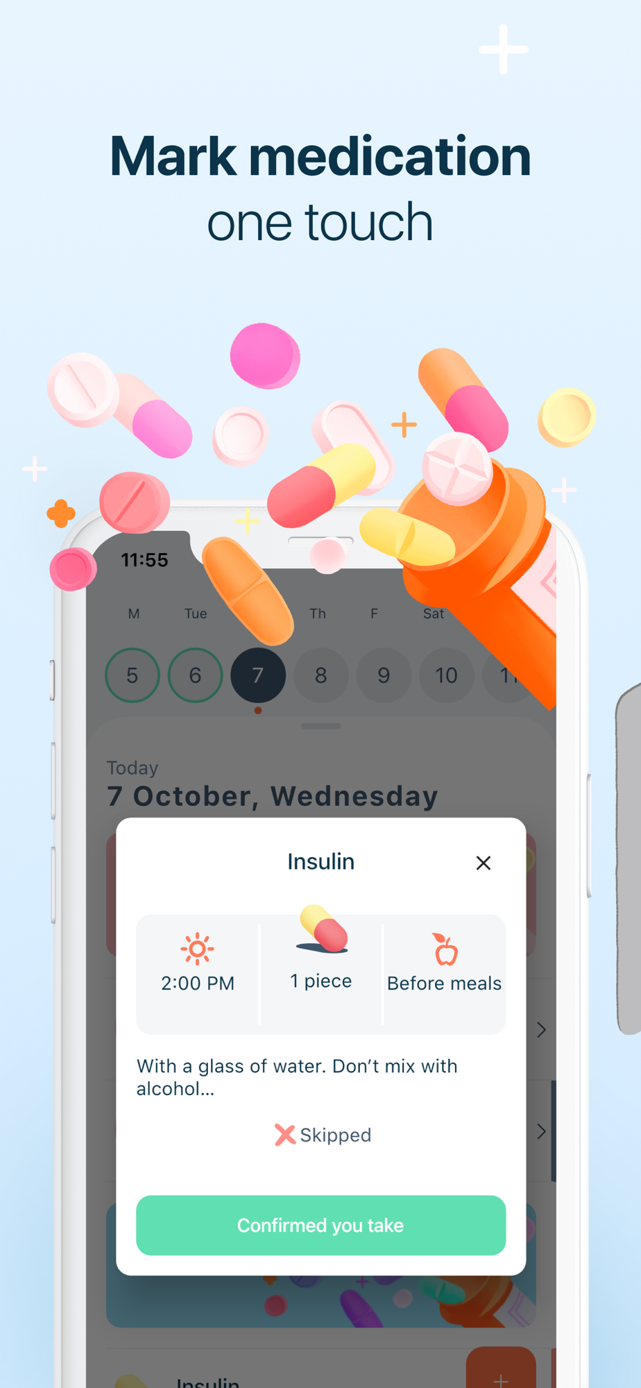 A reminder to take your medicine will pop up on your phone with a beautiful sound, and help you not confuse this important notification with others.