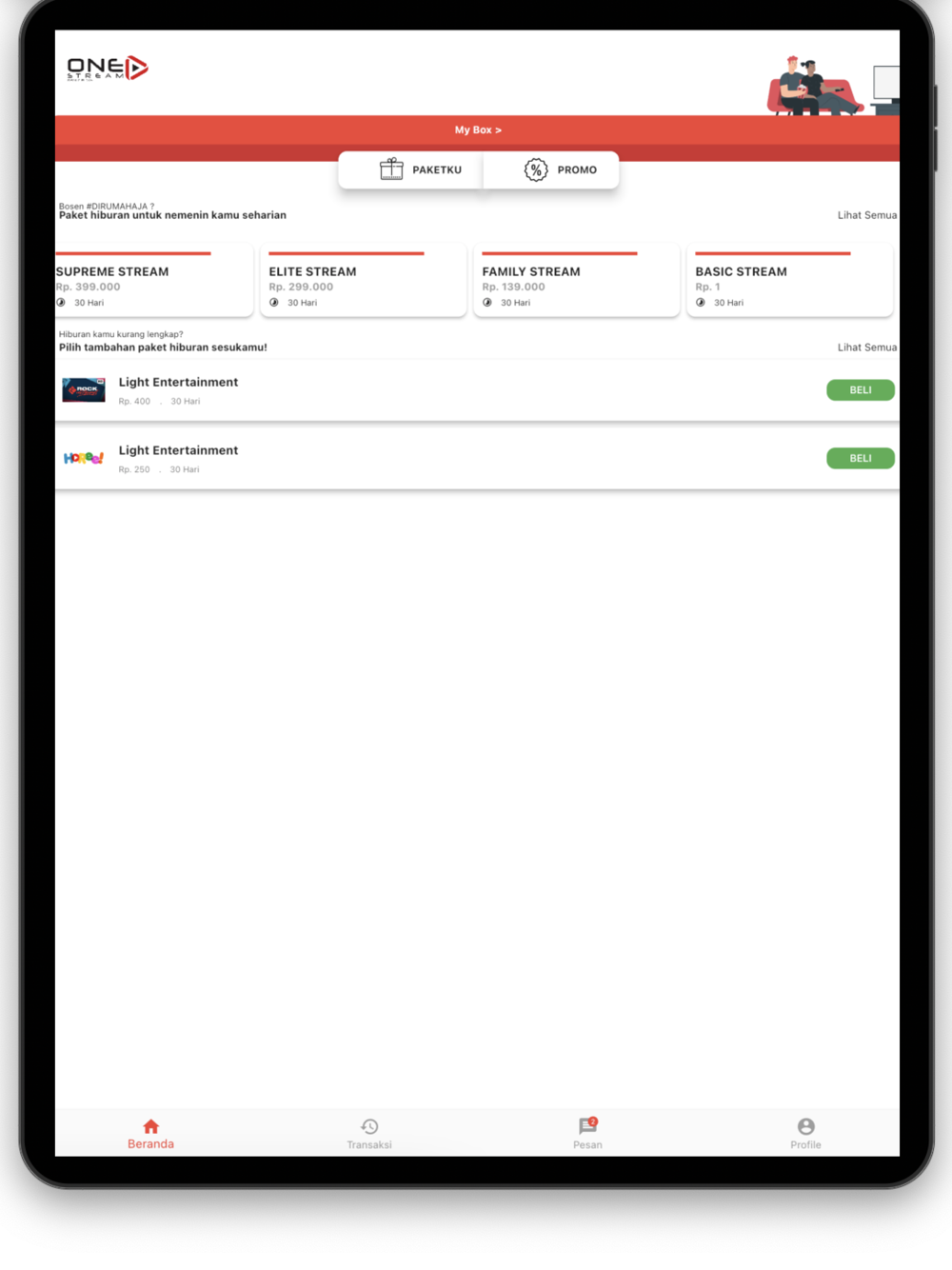 My OneStream adalah aplikasi yang memudahkan pengguna One Stream Smart Box untuk mengolah akun, membeli paket channel favorit, dan mengakses layanan bantuan One Stream. My OneStream dilengkapi dengan berbagai fitur yang memiliki fungsi sebagai berikut: