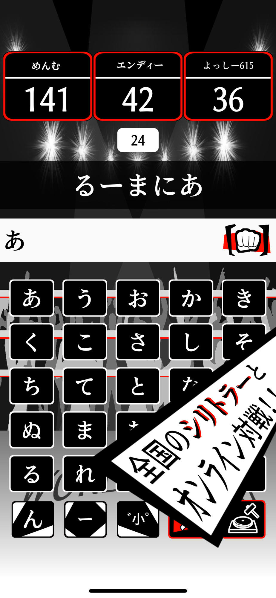 プレイヤーは、順番関係なく全員同時に『しりとり』を行います。