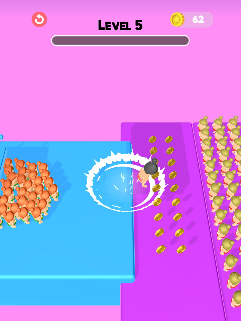 This sumo is so crazy and so strong! We expect you to throw enemies down and reach the finish point. You have special powers but you have to discover them yourself.
