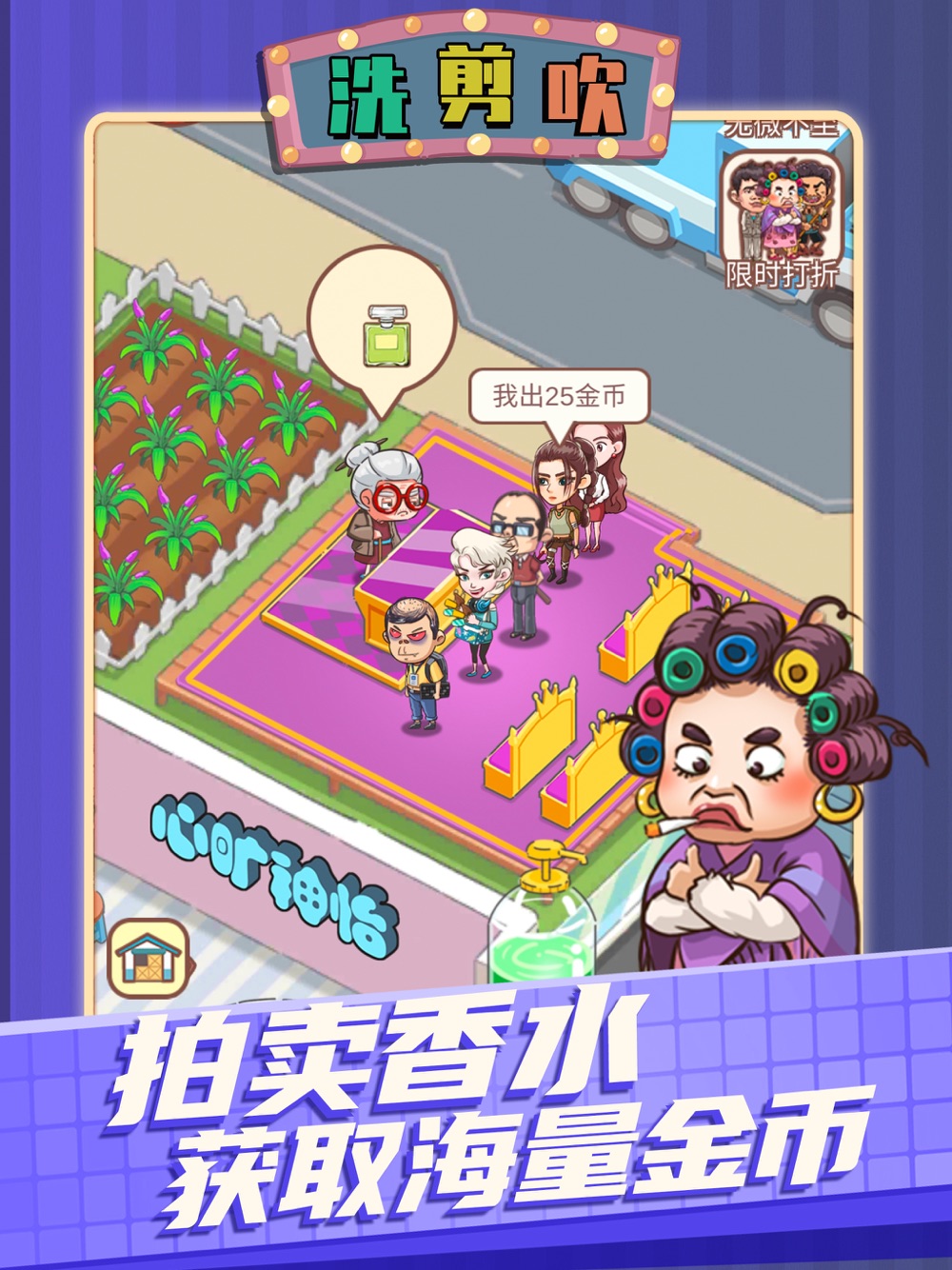 作为店铺的老板,你需要在游戏中制定经营计划,升级各种设施和装饰吸引顾客,并且为他们设计满意的发型。为顾客提供至尊服务,提高店铺声望,解锁更多超大牌的明星顾客,扩大店铺规模,提高口碑,财源滚滚!如果您也喜欢模拟经营的游戏,《洗剪吹》绝对是一款合适的休闲游戏!发挥你的经营头脑,大赚一笔吧!