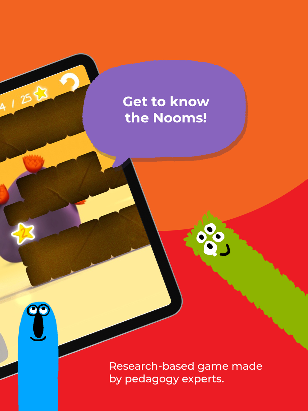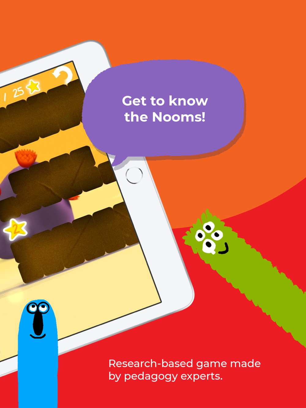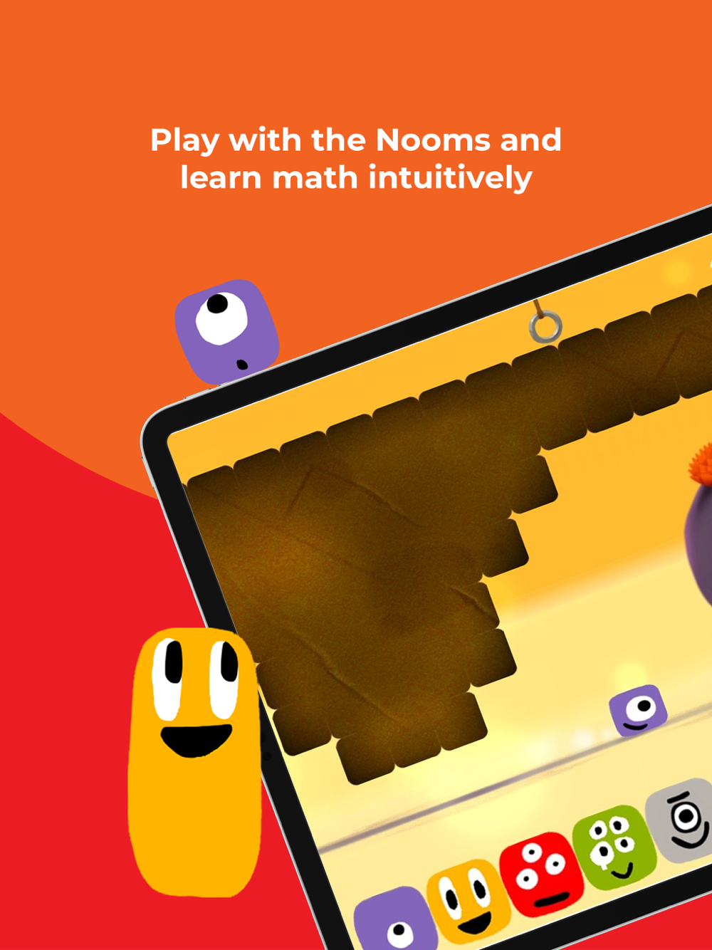 The app contains 4 different activities for your child to explore, each designed to challenge your child to use the Nooms and basic math in a different way.