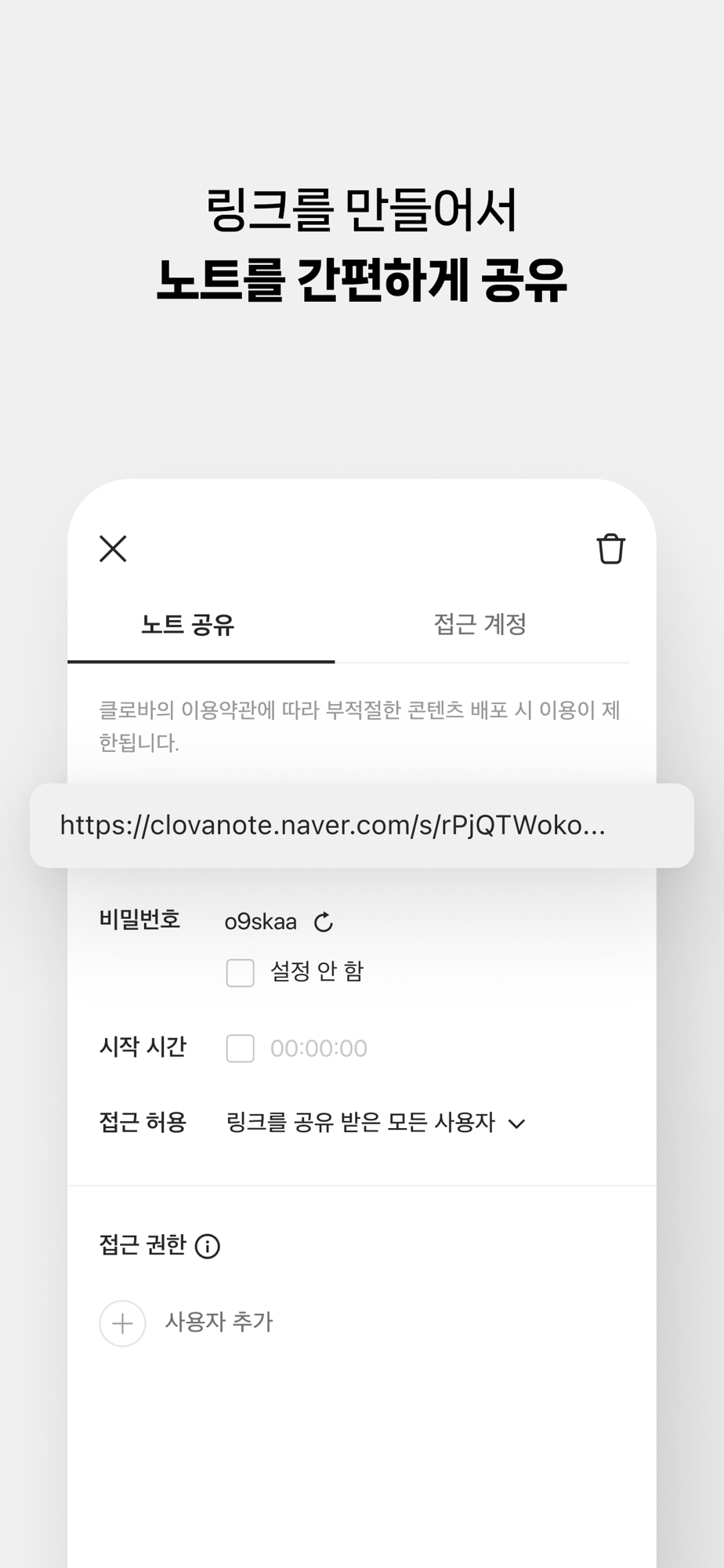 대화 참석자들에게 노트를 링크로 간편하게 공유해 보세요.