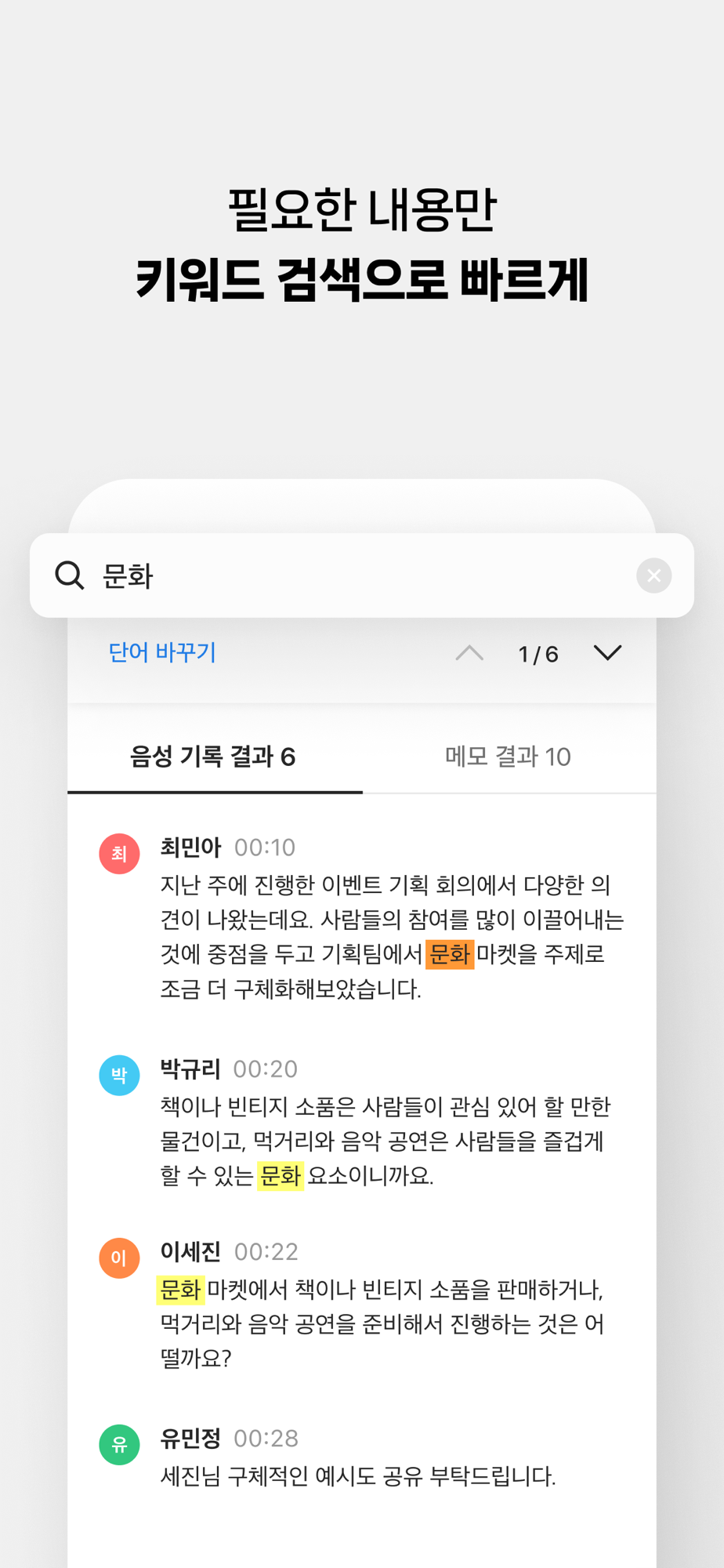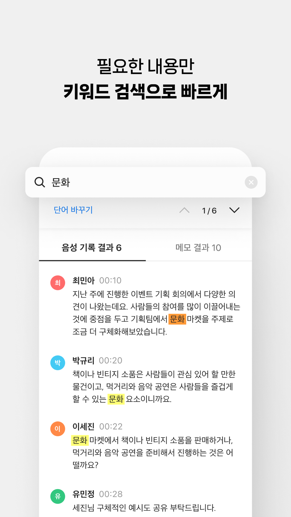 - 텍스트로 변환된 음성 기록과 참석자 목소리 구분은 녹음 기록을 정리하기 위한 초안으로 활용을 권장 드립니다.