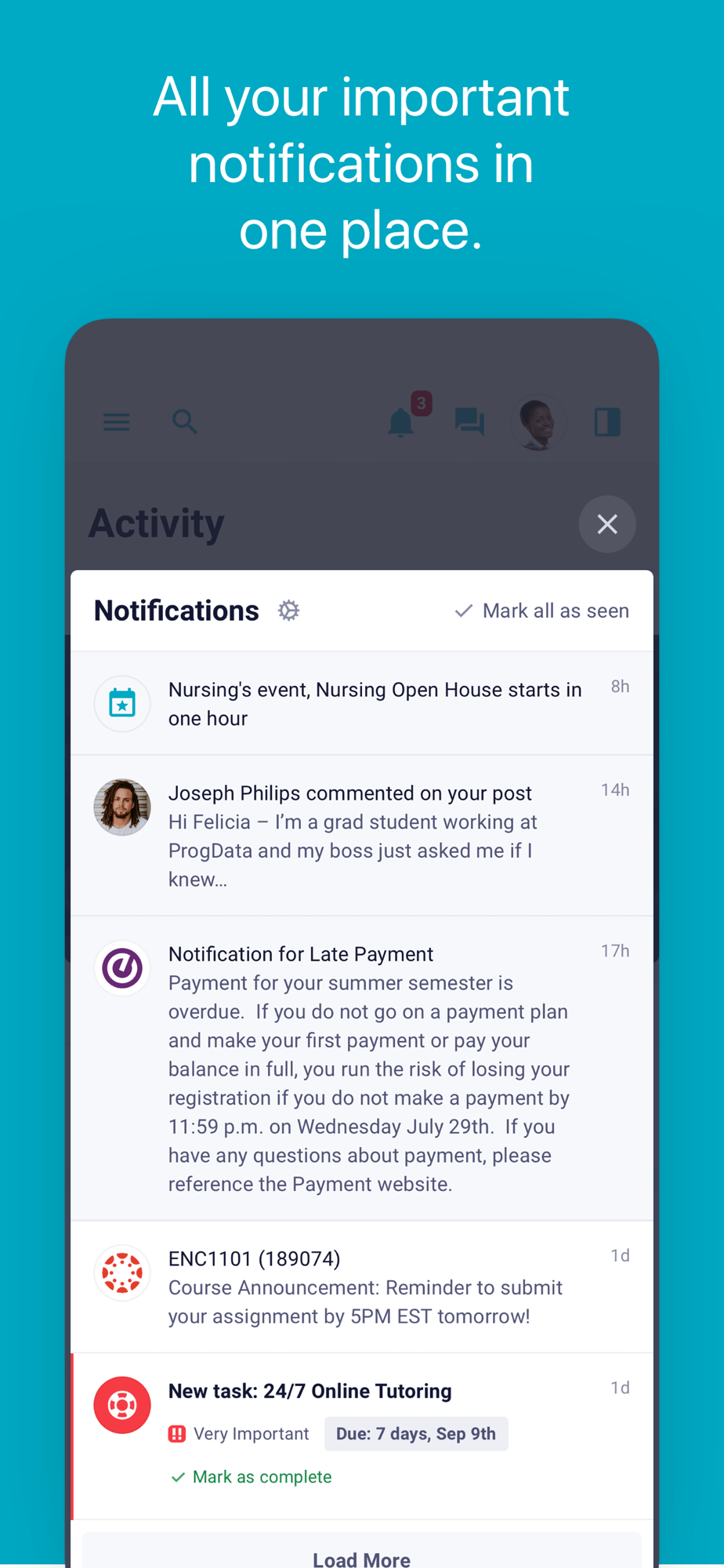 Receive updates when grades are published, assessments are due and announcements are posted.