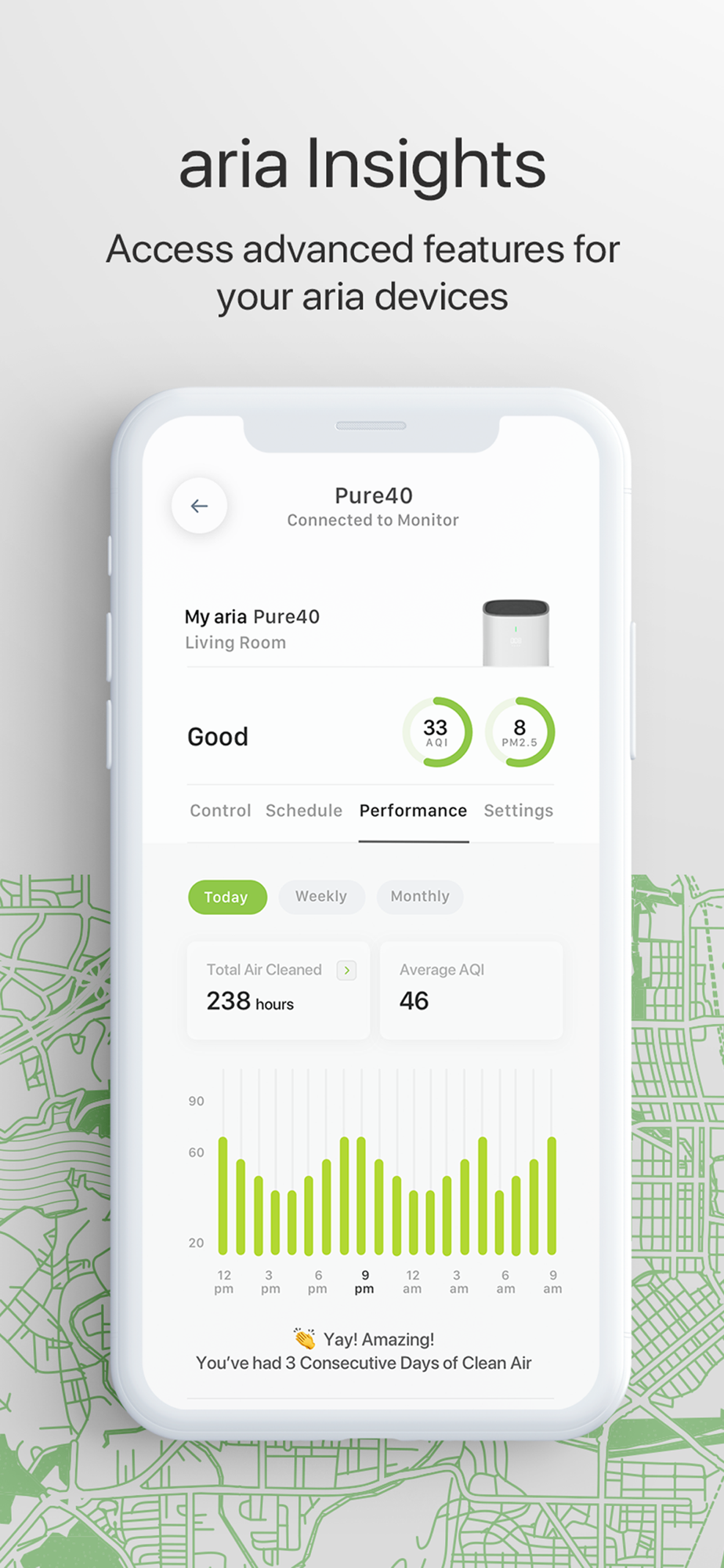 Unhealthy outdoor air frequently makes its ways indoors. This air quality inside your home could be harmful to your health. By linking your aria Pure40 Air Purifier and aria AirTest Home Air Monitor to the nafas app, you could gain a full perspective of both outdoor and indoor air quality.
