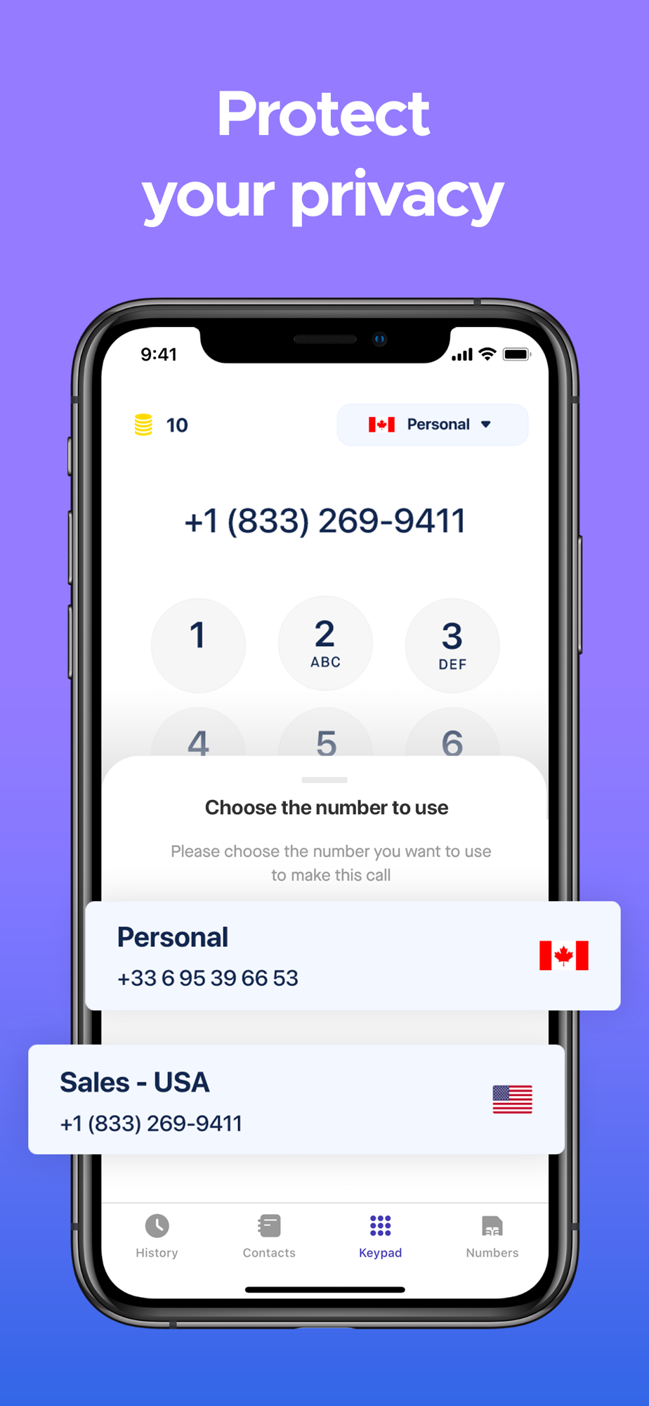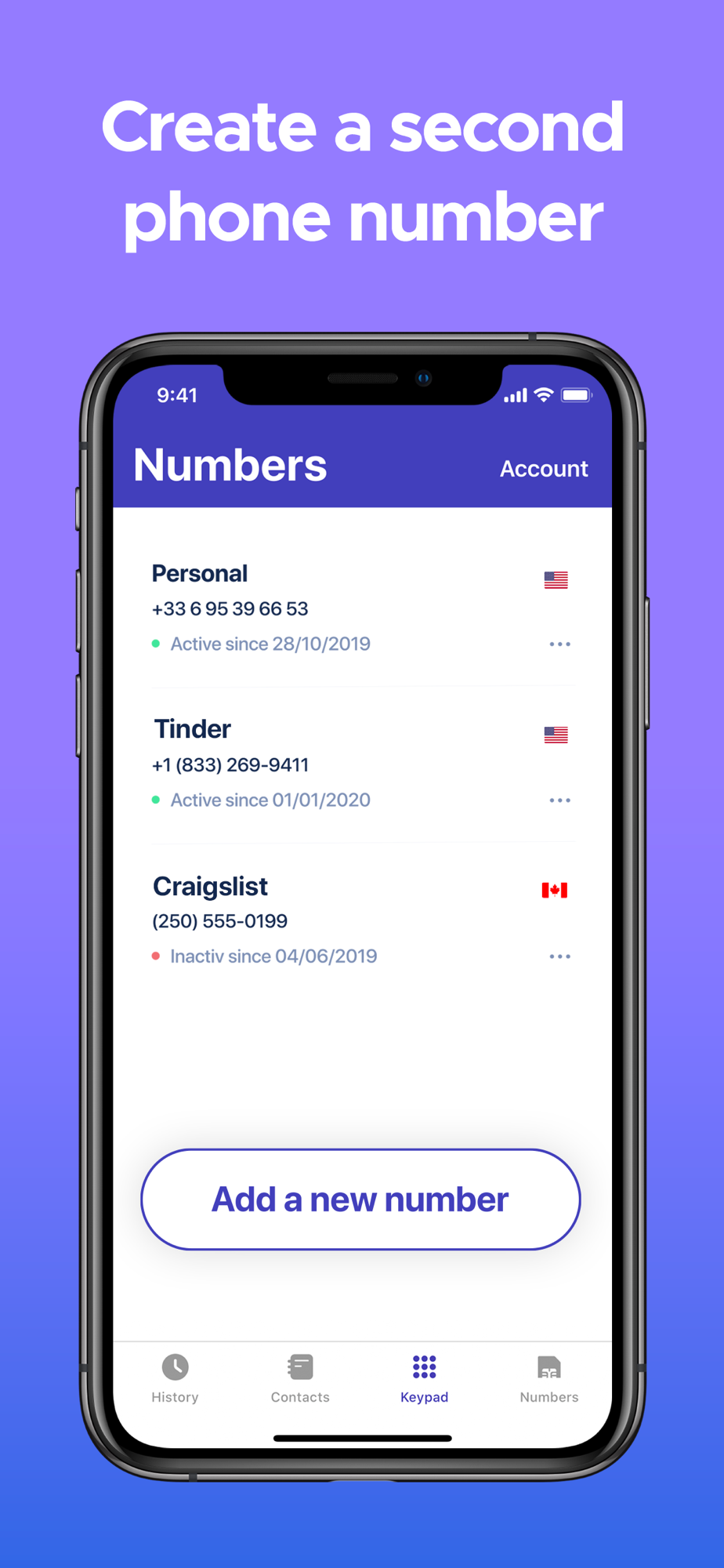 No SIM card needed, just choose a country, an area code, a phone number and... you're set!