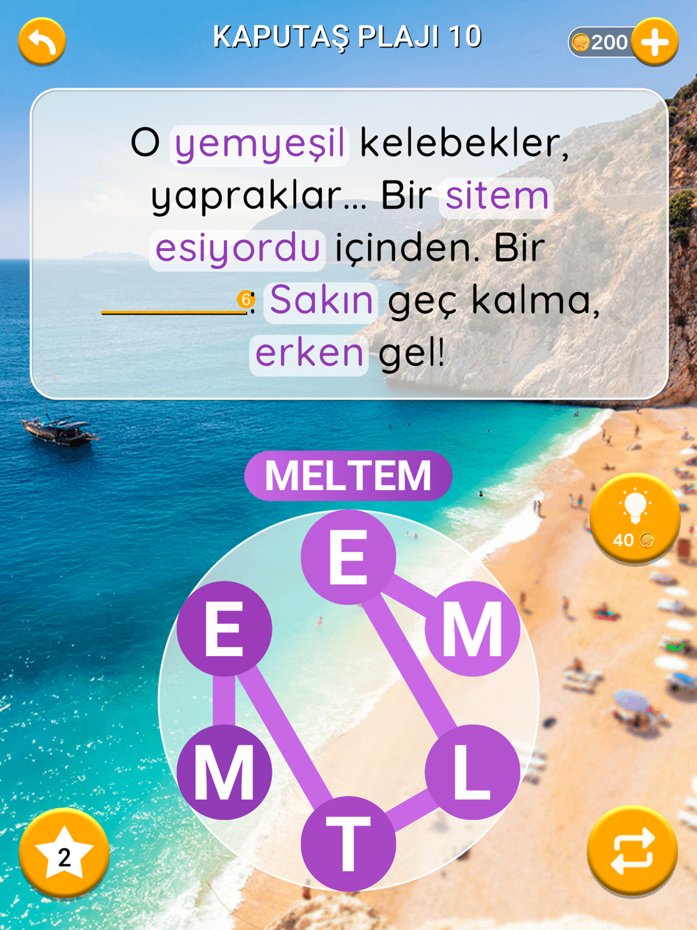 Çok farklı türden oyun sevenler buraya! Zeka oyunları, ücretsiz oyunlar ve eğlenceli oyunları seviyor iseniz en güzel oyunlardan birisi Kelime Gezmece 2! En popüler oyunlardan ve en değişik oyunlardan bir söz oyunu karşınızda. Harfleri birleştirmeye şimdi başlayın!