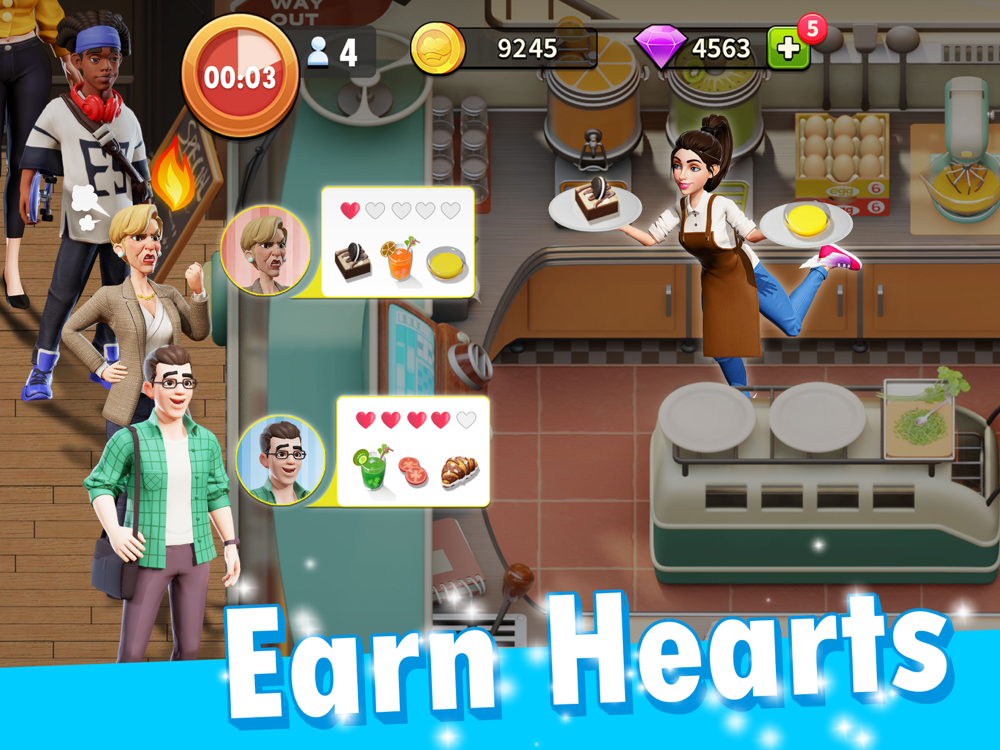 - Serve customers and manage rushes to collect tons of cooking games rewards!