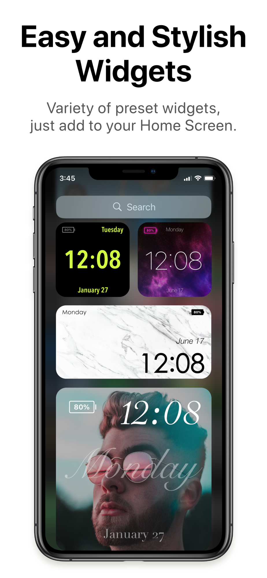 A lot of preset widgets to use instantly or just simple change background to your own photo.