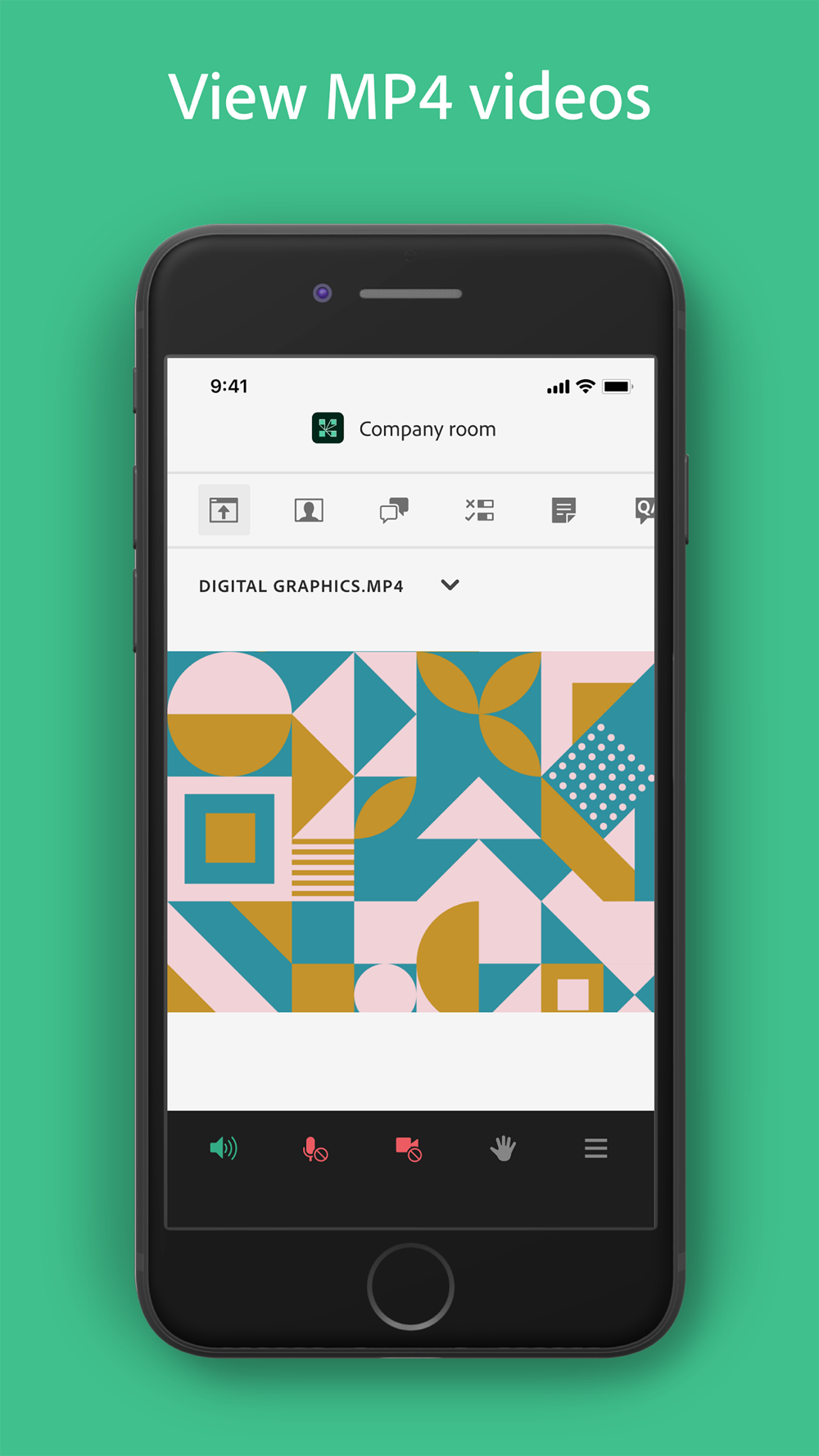 Use your built-in microphone and speakers, a connected headset, or a Bluetooth device such as Apple AirPods to join meeting audio. Or join a telephone conference if included with the meeting. Participate in video conferencing using your device’s cameras. View high quality PowerPoint® presentations, videos, PDF documents, images, GIF animations, or desktop computer screens being shared. Participate in chat, vote in polls, read notes, download files, click links, ask questions, raise your hand, agree/disagree, or let the host know you have stepped away.