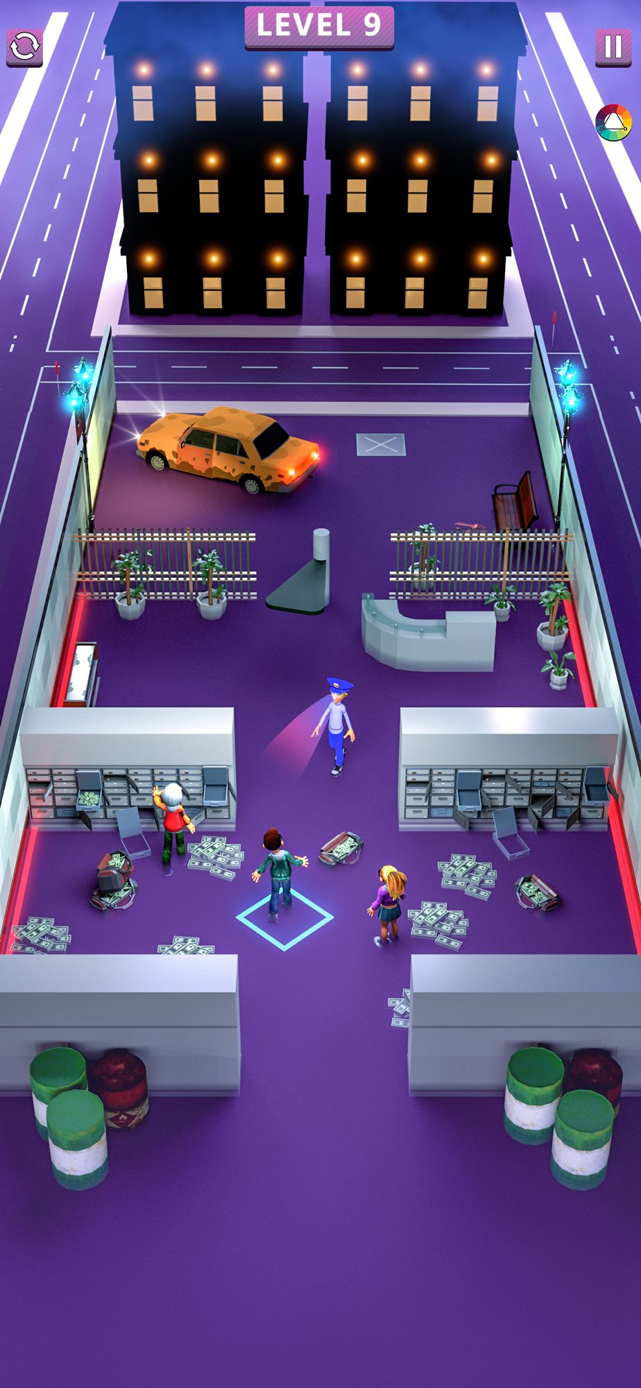Do you have what it takes to be the ultimate escape master? Find out your special escape skills in this amazing and fun puzzle game. Draw the perfect path between you can the escape point. Be the master of escape routes and show the cops that they have to train harder to catch you. Be aware of the sensors and search lights! You can get away from the cops but you cannot beat the technology that easily!