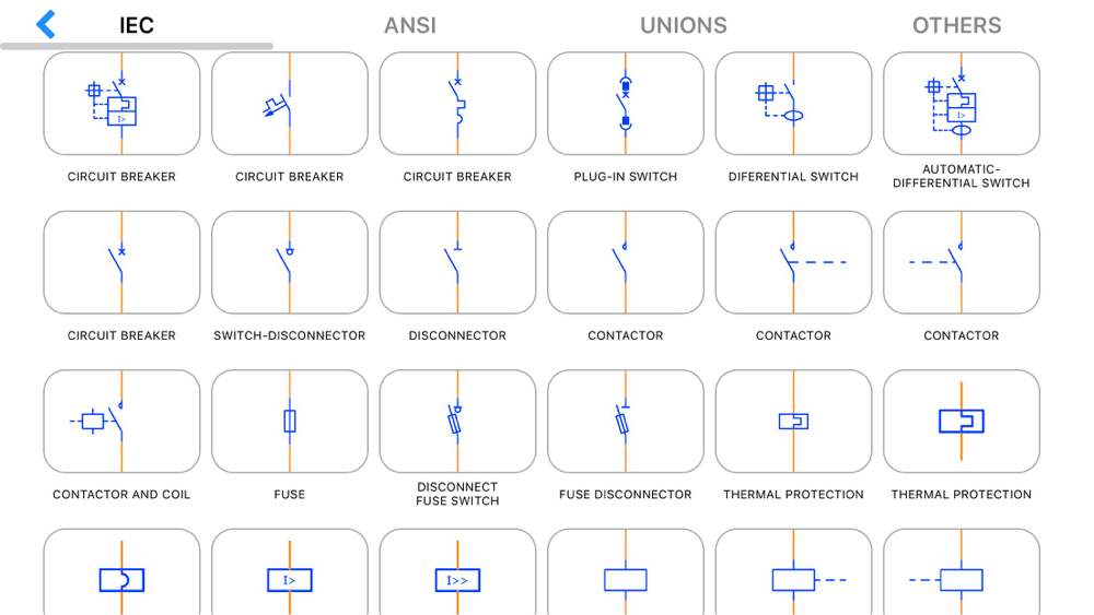 This tool will allow you to create your own one-line diagrams quickly and easily. Simply select the symbol you want to use and drag it to the desired position.