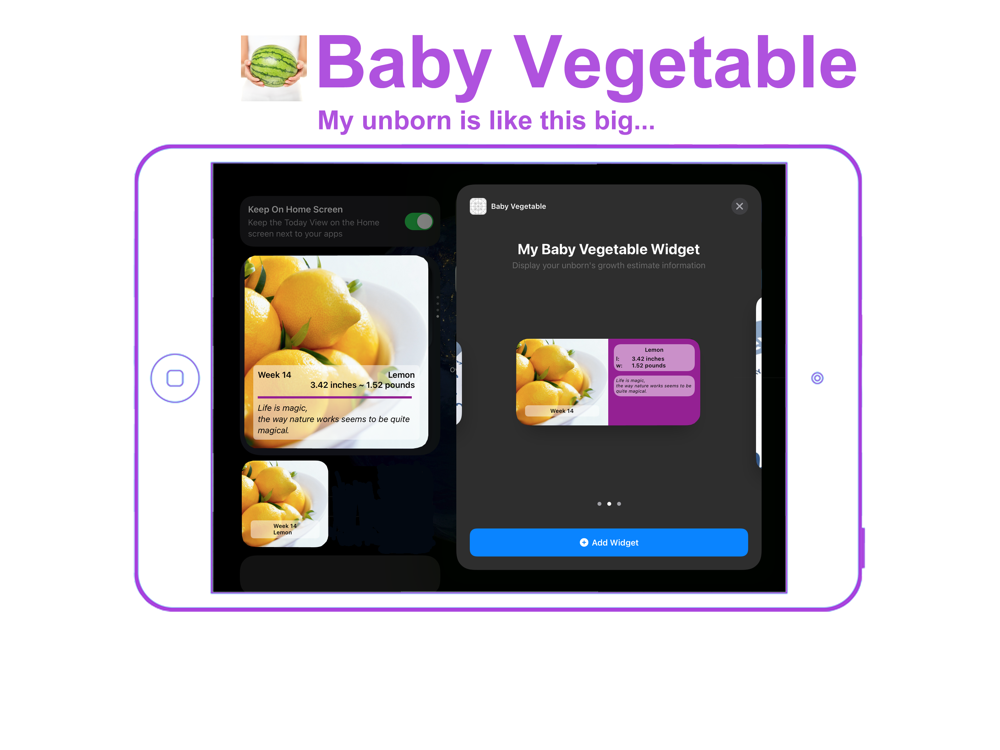 You’ll see an approximate growth in weight and length of your unborn child. This information is made more tangible by having every week estimate accompanied by a vegetable/fruit/seed image for comparison.