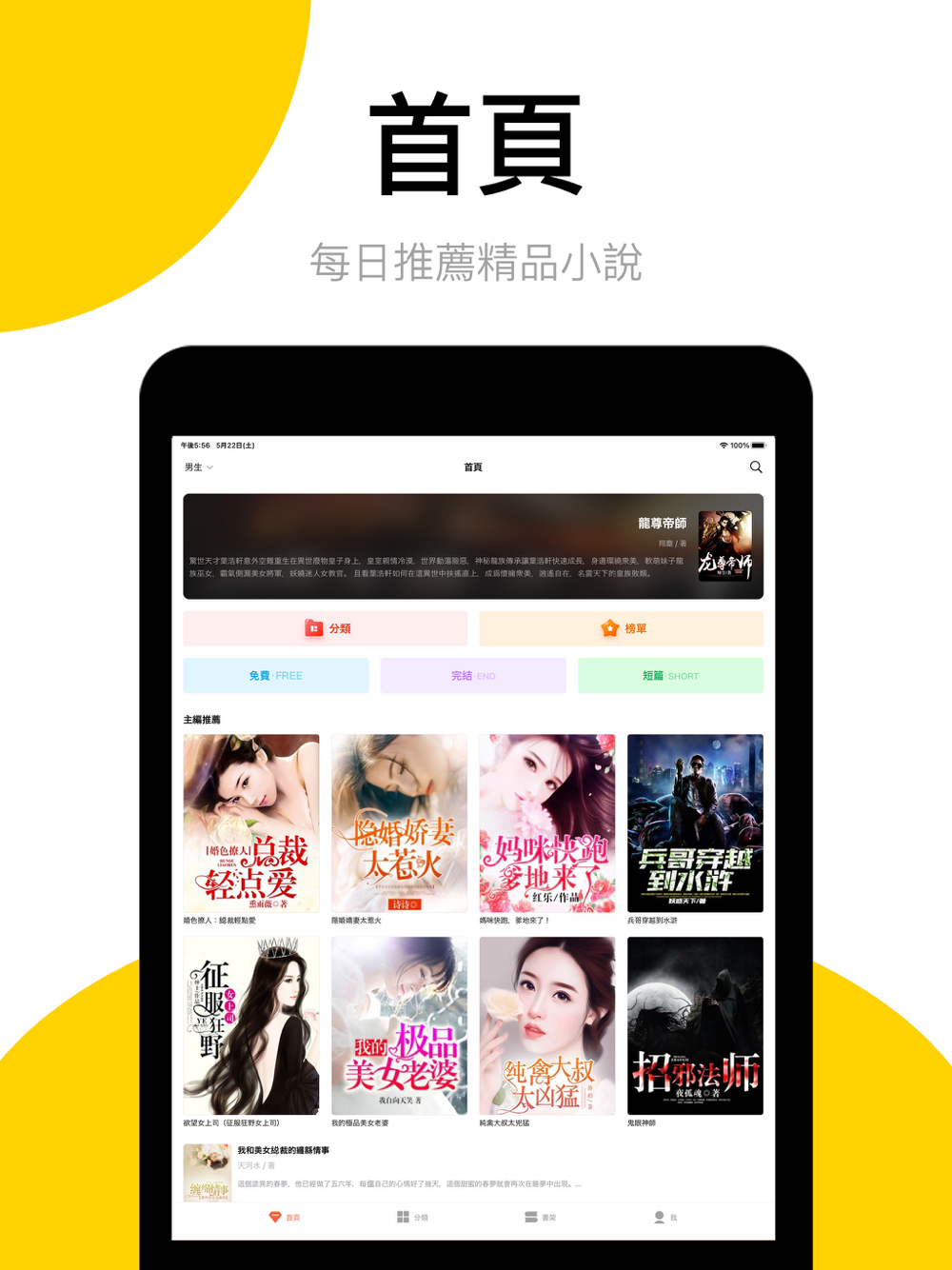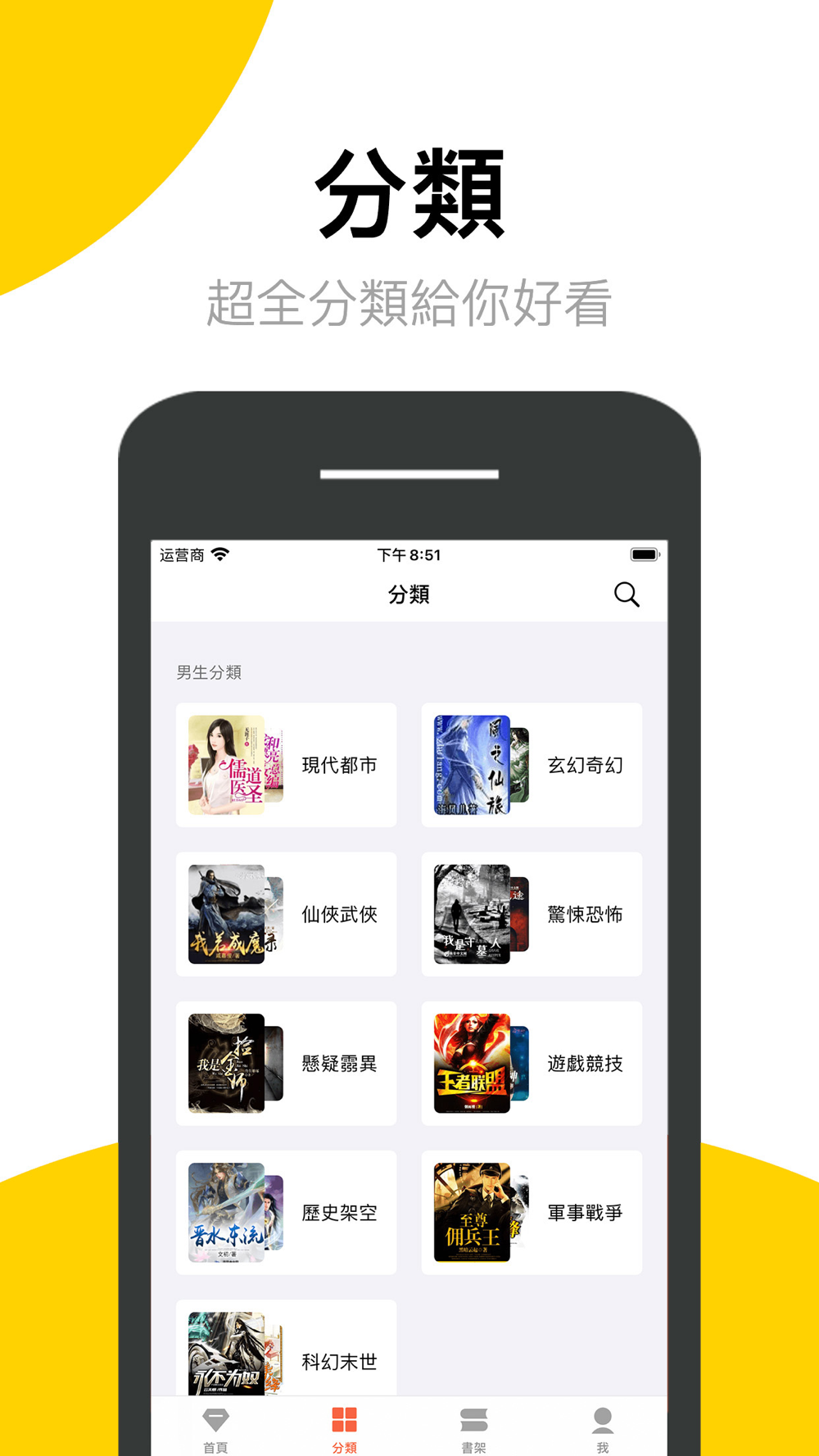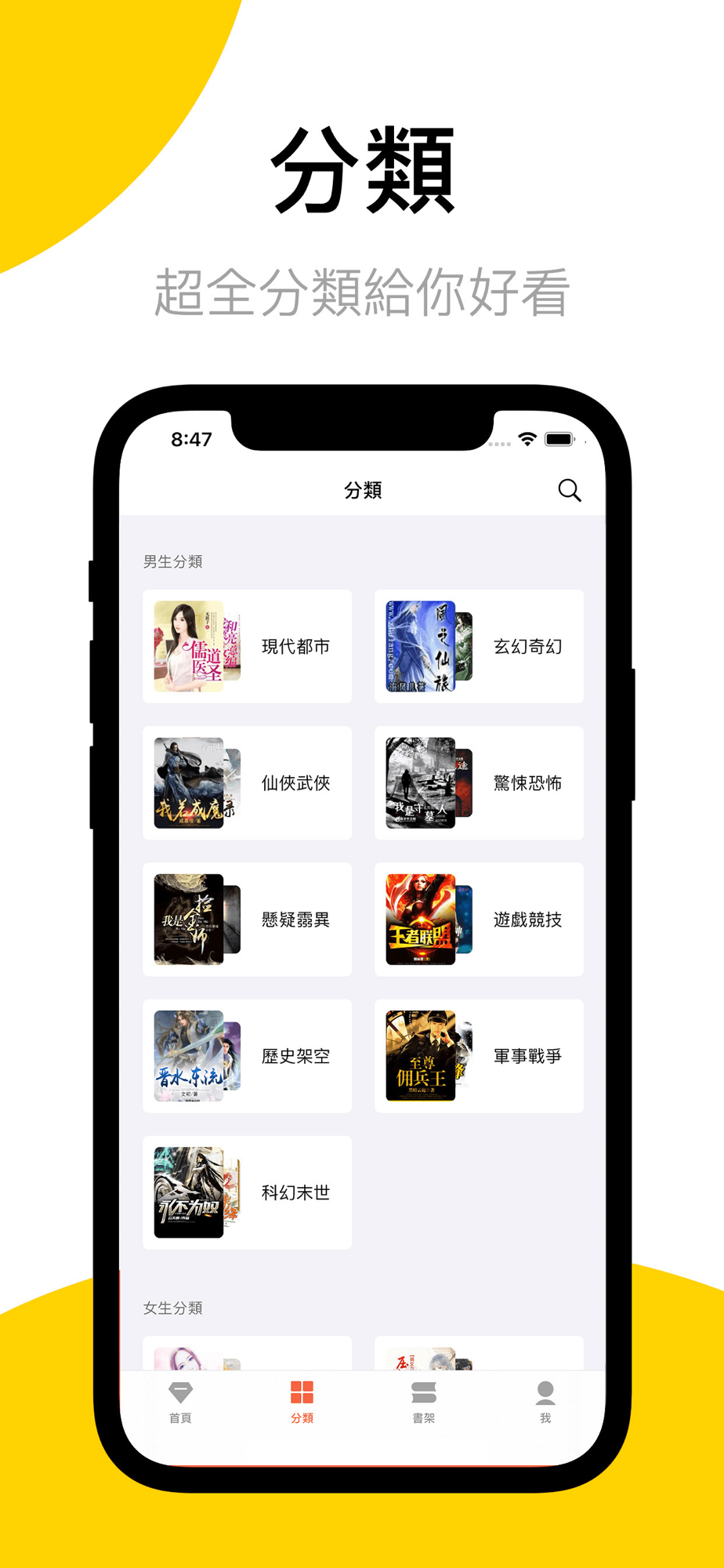 數十個小說分類,囊括百萬本小說,玄幻奇幻、武俠仙俠、都市言情、青春校園、穿越架空隨便看。