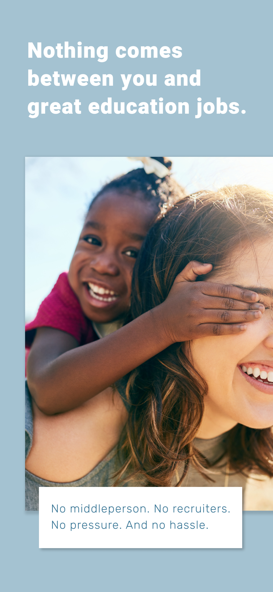 With Spindle, nothing comes between you and great education jobs. There’s no middleperson. No recruiters. No pressure. And no hassle. It’s simply one of the very best job search apps available. Download Spindle today and you’re instantly empowered to find and apply for amazing education jobs—wherever you are, or wherever you want to be.