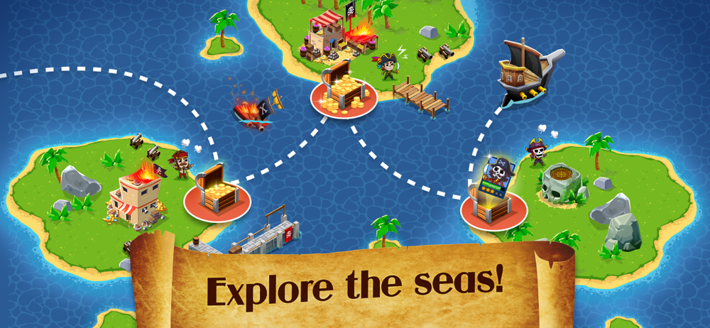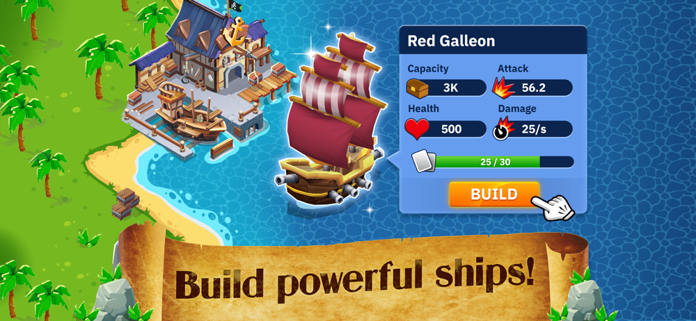 Expand your hideout on a tropical island to unlock bigger and better pirate ships.