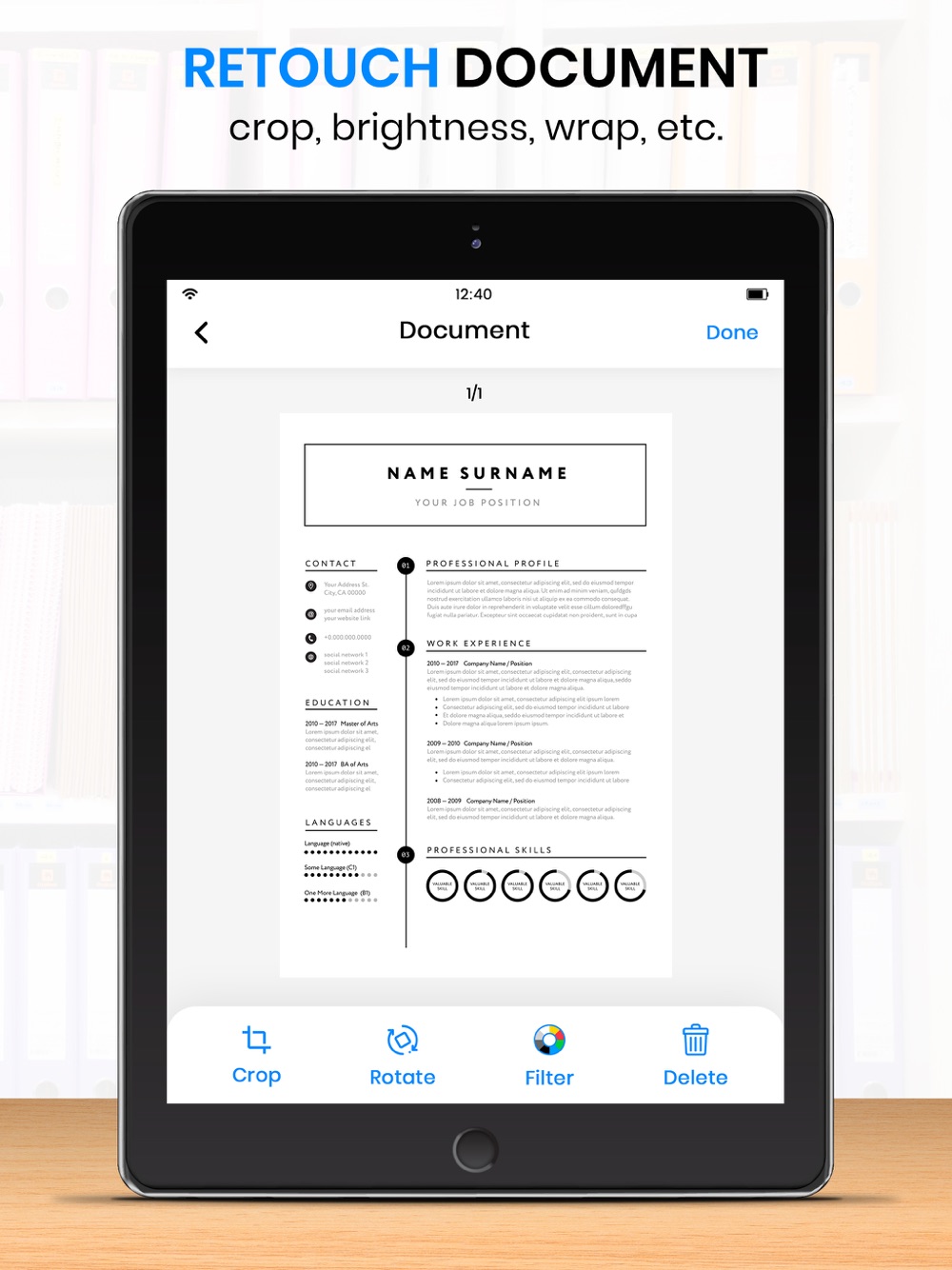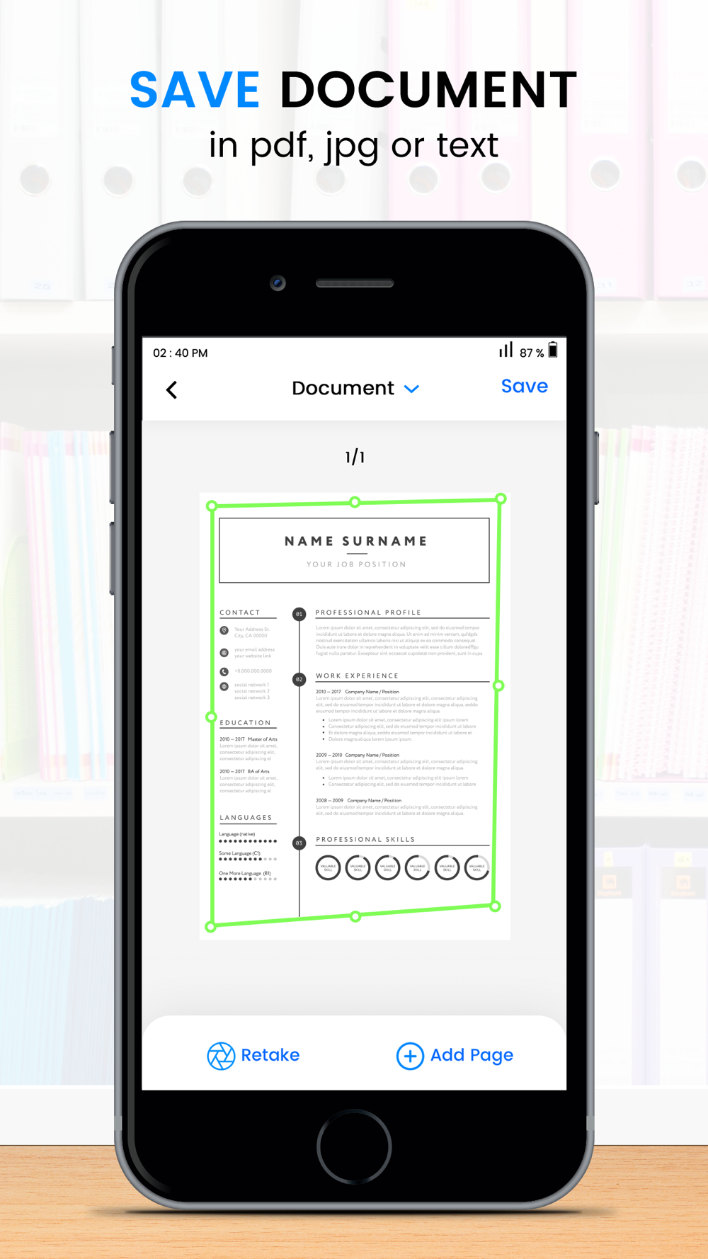 Transform an image with the highly accurate OCR scanner software into a file. Extract text from a scanned page with ease, edit it, and save as a new document. This OCR-accurate text scanner recognizes all common languages and can even identify multiple languages within a single document. This powerful document scanner is safe to use for your everyday needs. They can set up a PIN for the entire scan application, or lock specific files or documents if you want to secure your scans.
