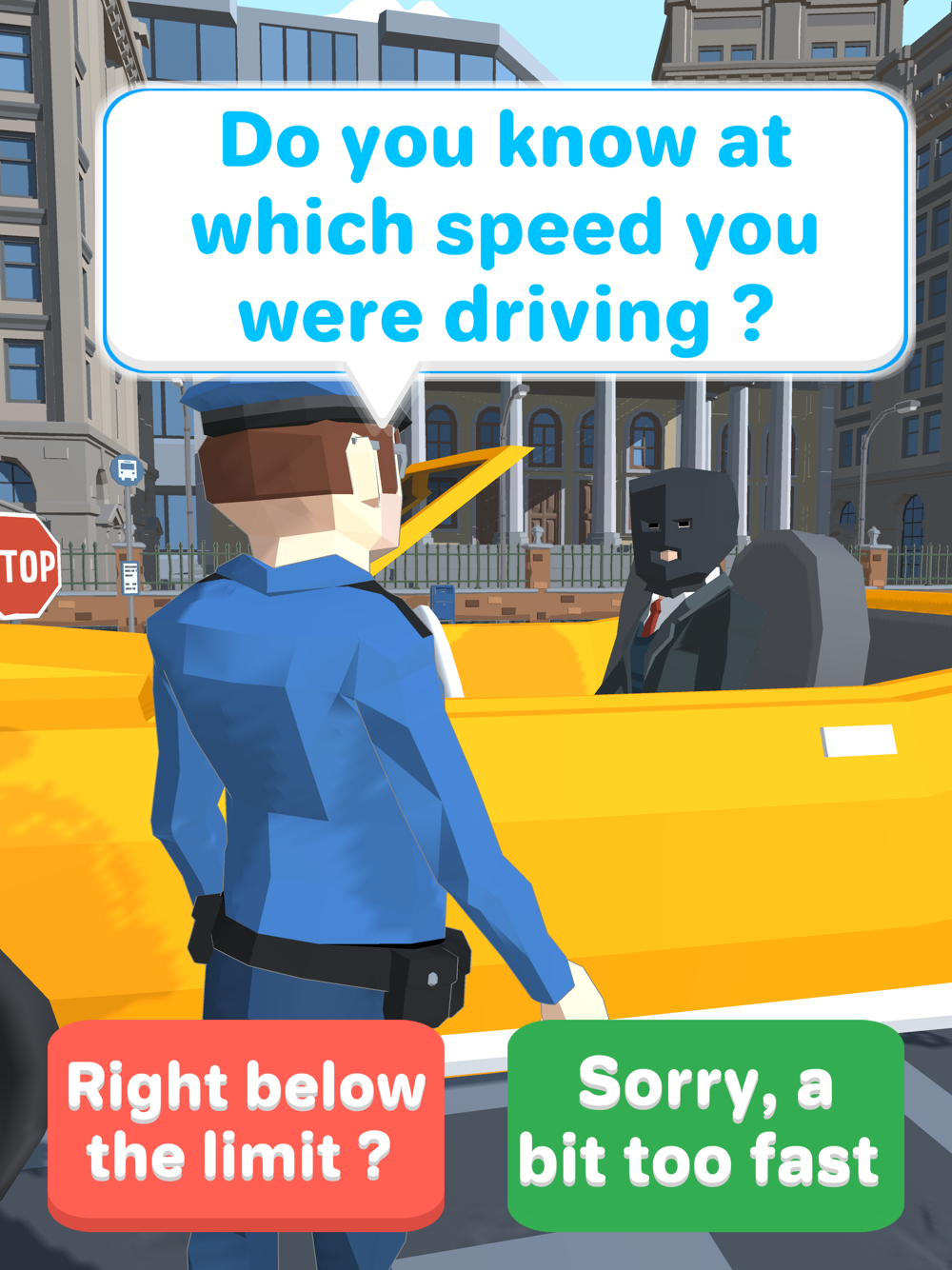 Be smarter than the cop and answer the right sentences to avoid being jailed!