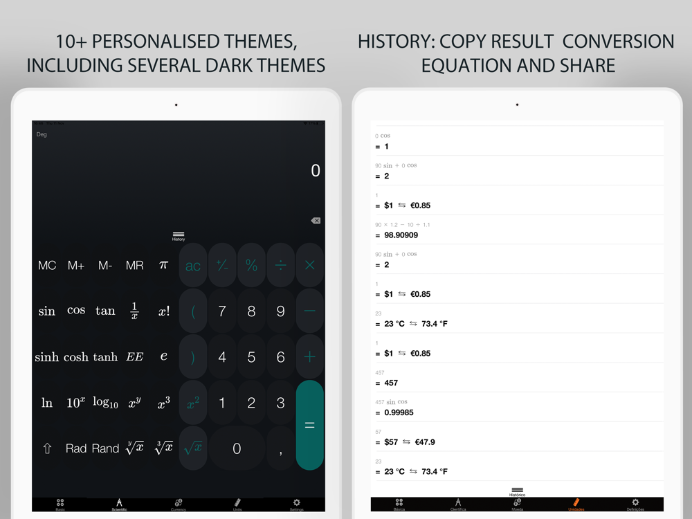 Use it in portrait mode or landscape mode if you need some extra functions. You can also use myCalc for up-to-date currency conversions and unit conversions.