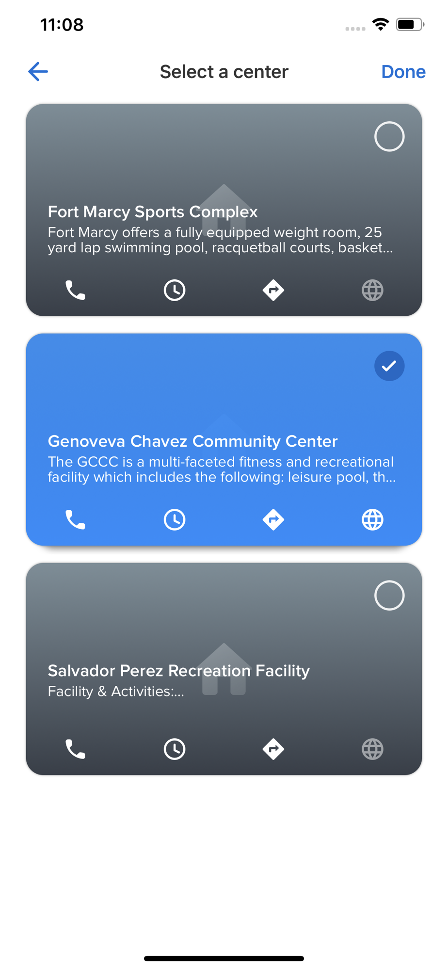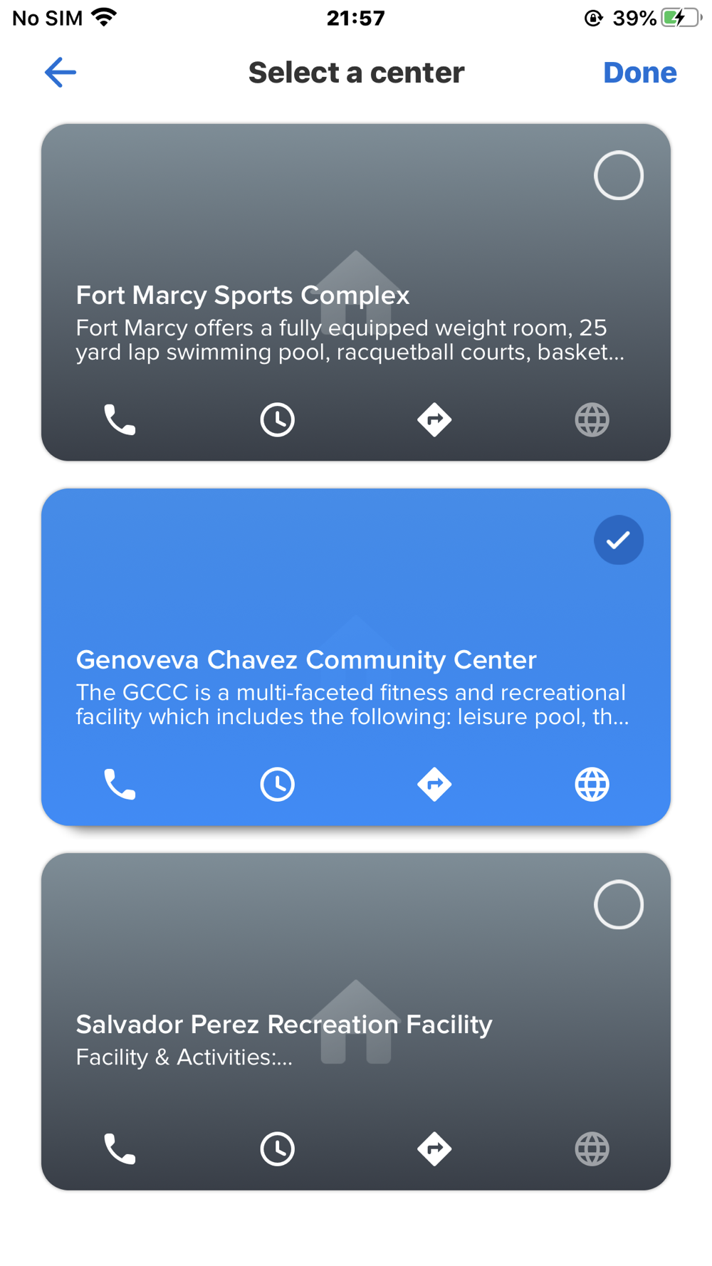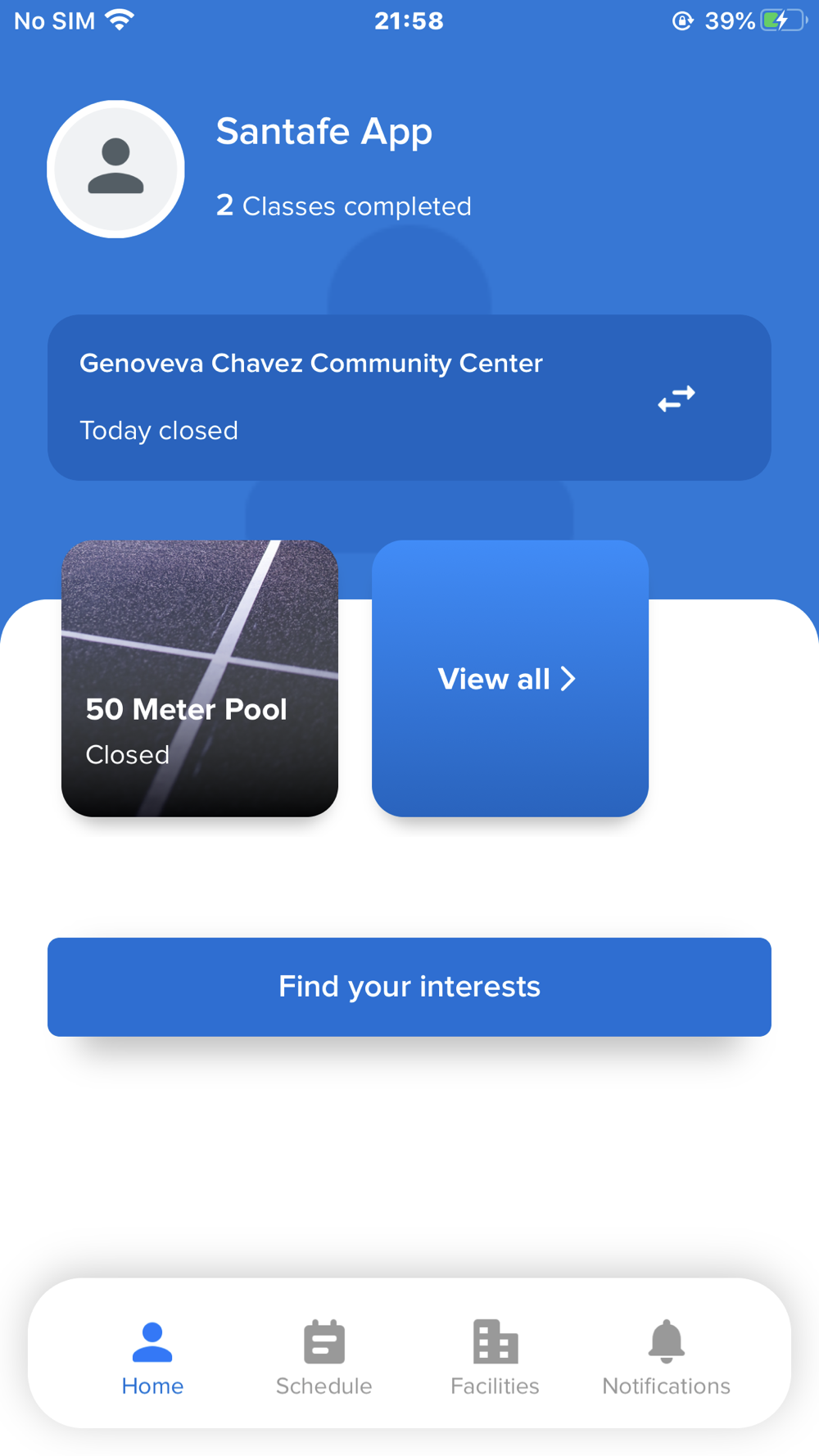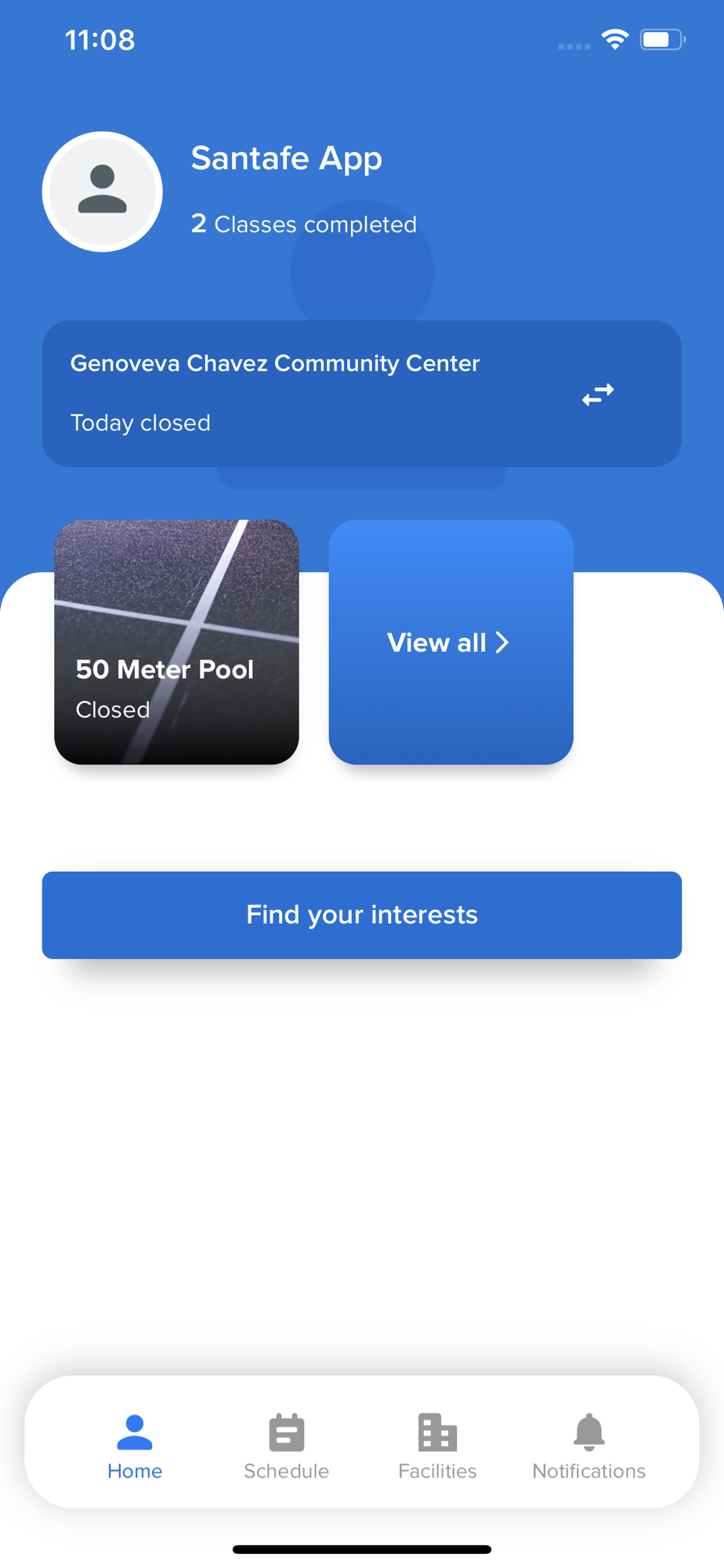 on the Home tab, view a center’s operating hours, manage your reservations and open your membership barcodes.