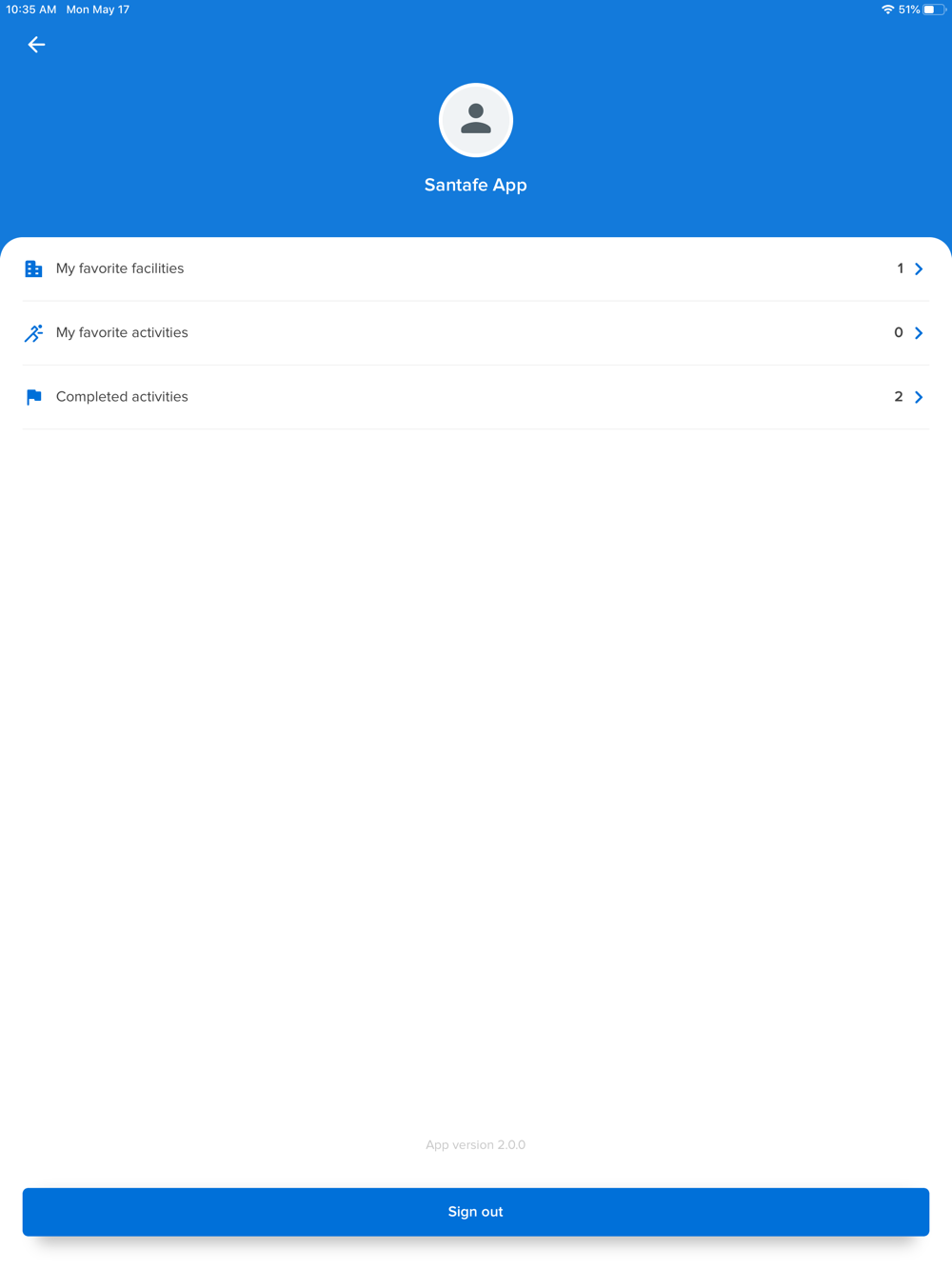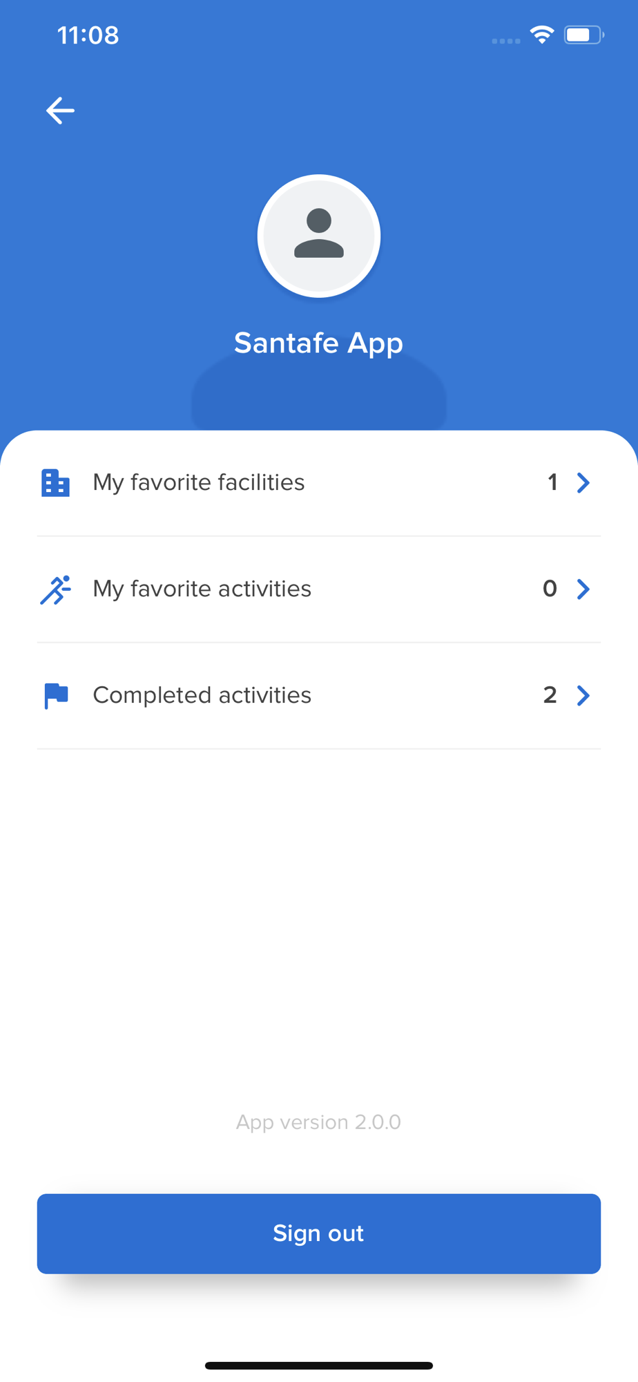 on the profile page, view your favourite facilities, favourite activities and completed activities.