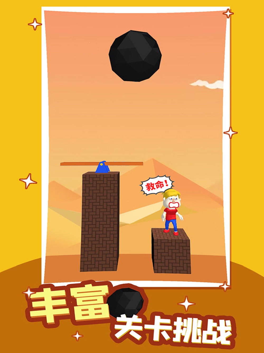 这款益智游的人物碰到障碍物,或者被攻击到就算闯关失败。