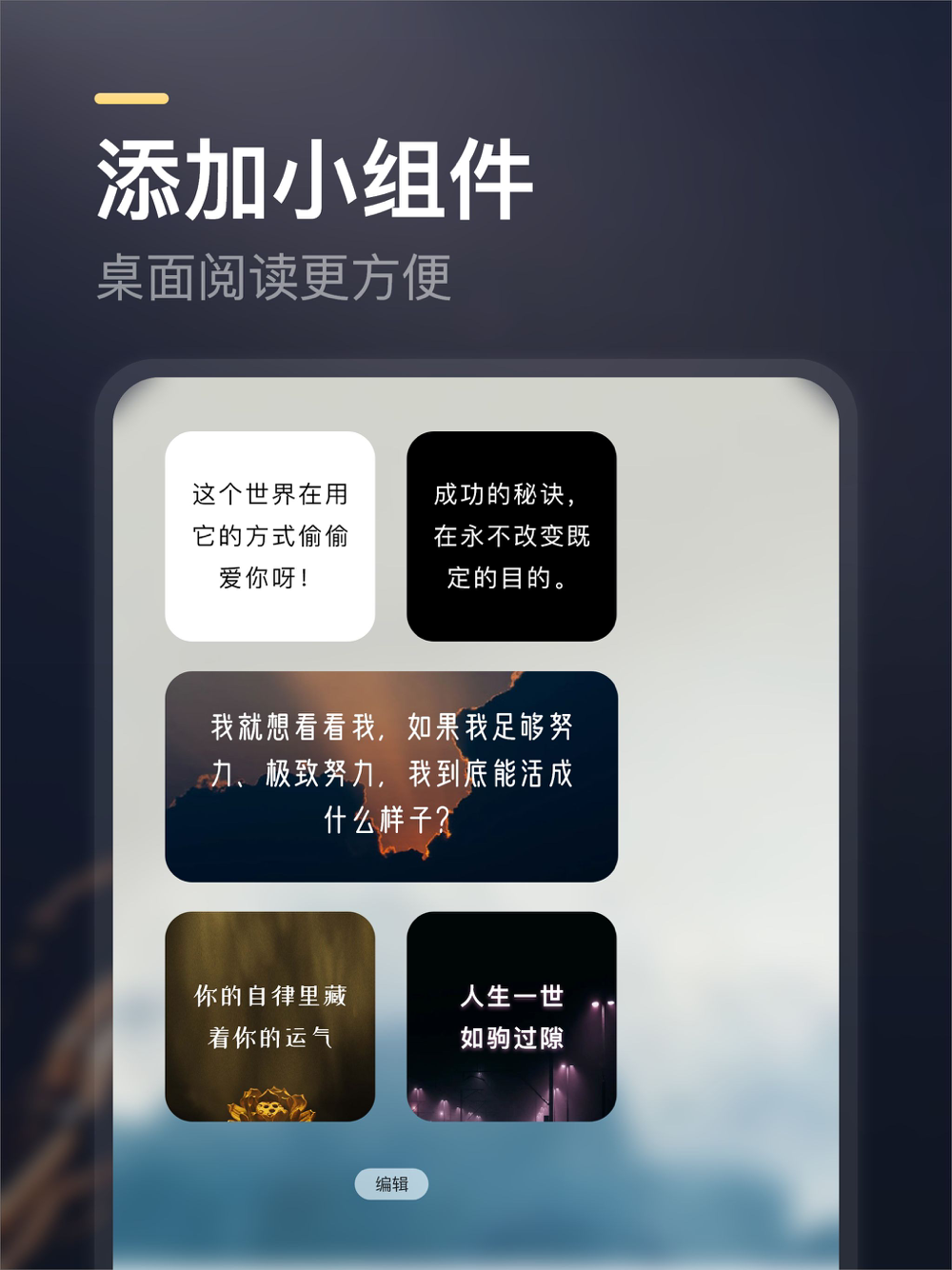 - 设置小组件,将句子放到手机桌面,阅读更方便