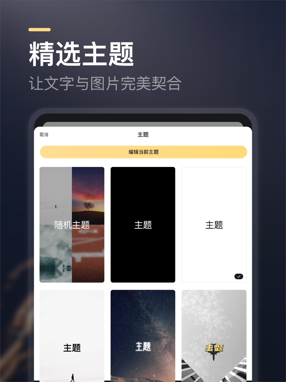 - 编辑自己喜欢的主题,将语录制作成精美的图片壁纸