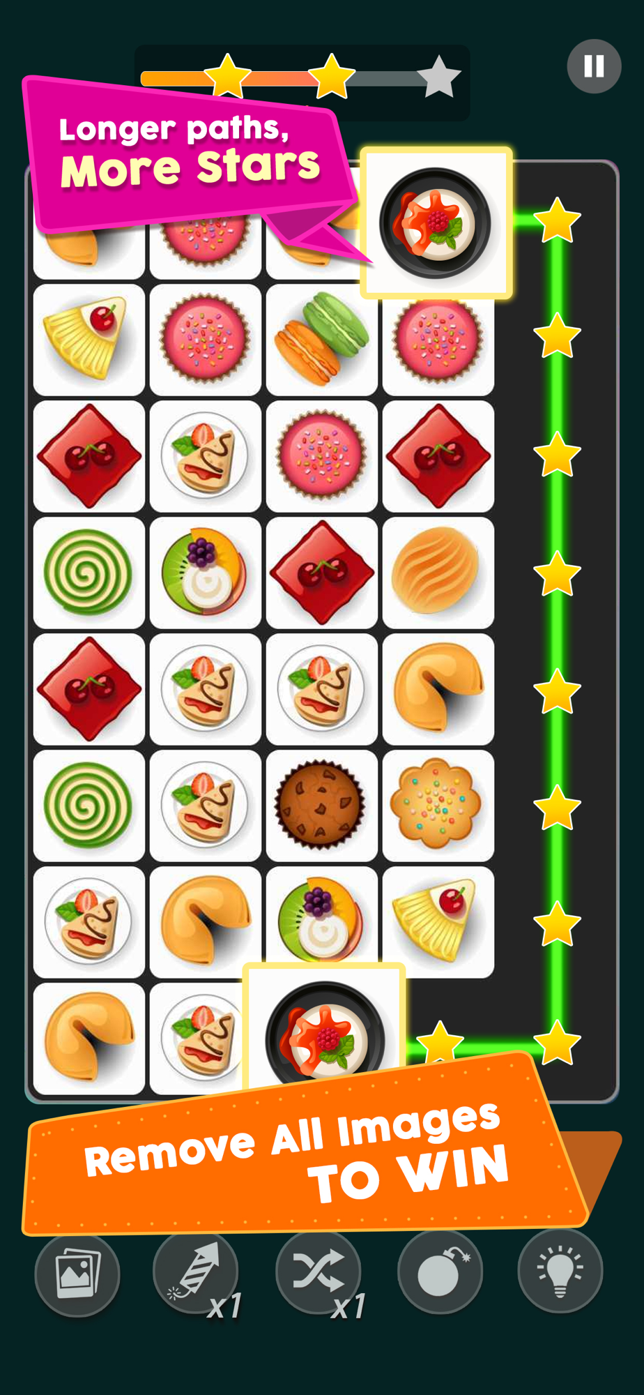 Play for free this awesome link game and enjoy hours of fun connecting lovely images of cute animals, delicious food, amazing places, and so much more. Test your skills by matching and linking the same kind images and work your way up to victory!