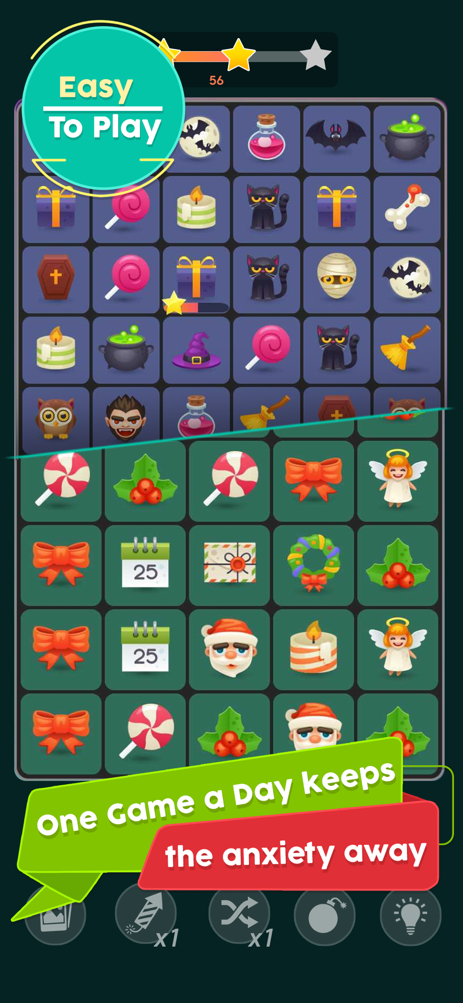 - Inspired from the classic Mahjong game, and also we introduce a brand new mechanic.