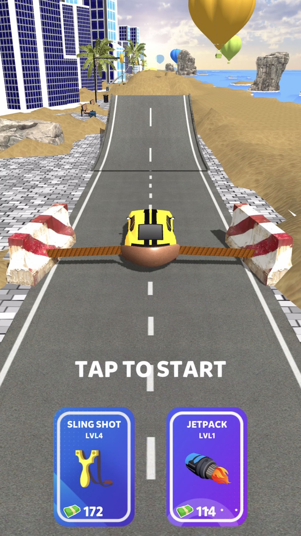 Drag your slingshot and release to launch the car. Upgrade stats to go as far as possible.