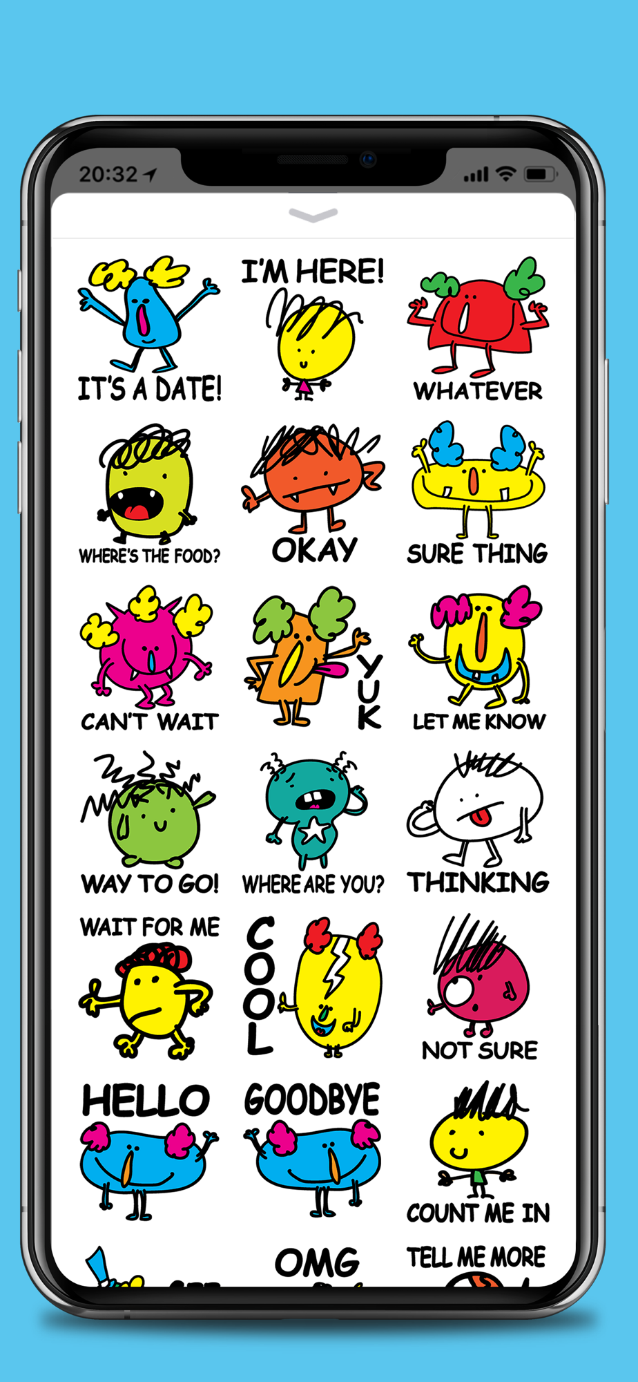 These sketchy stickers will add silly personality to your messages and set you apart from the crowd. Pack contains 40 static stickers.