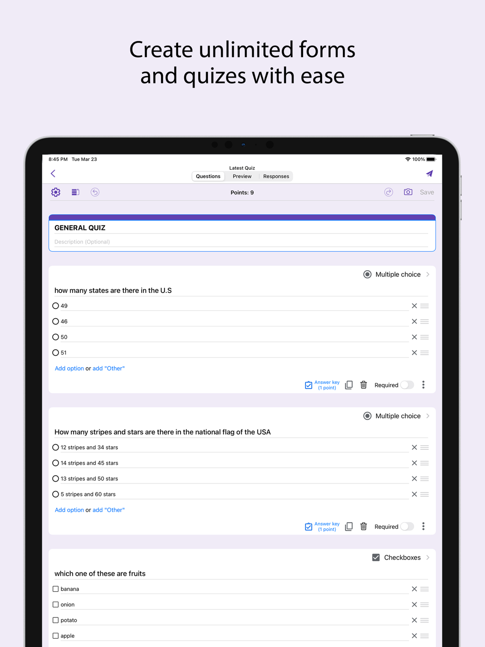 • View forms in three modes i.e. Summary, Questions and Individual responses mode on your iOS device.