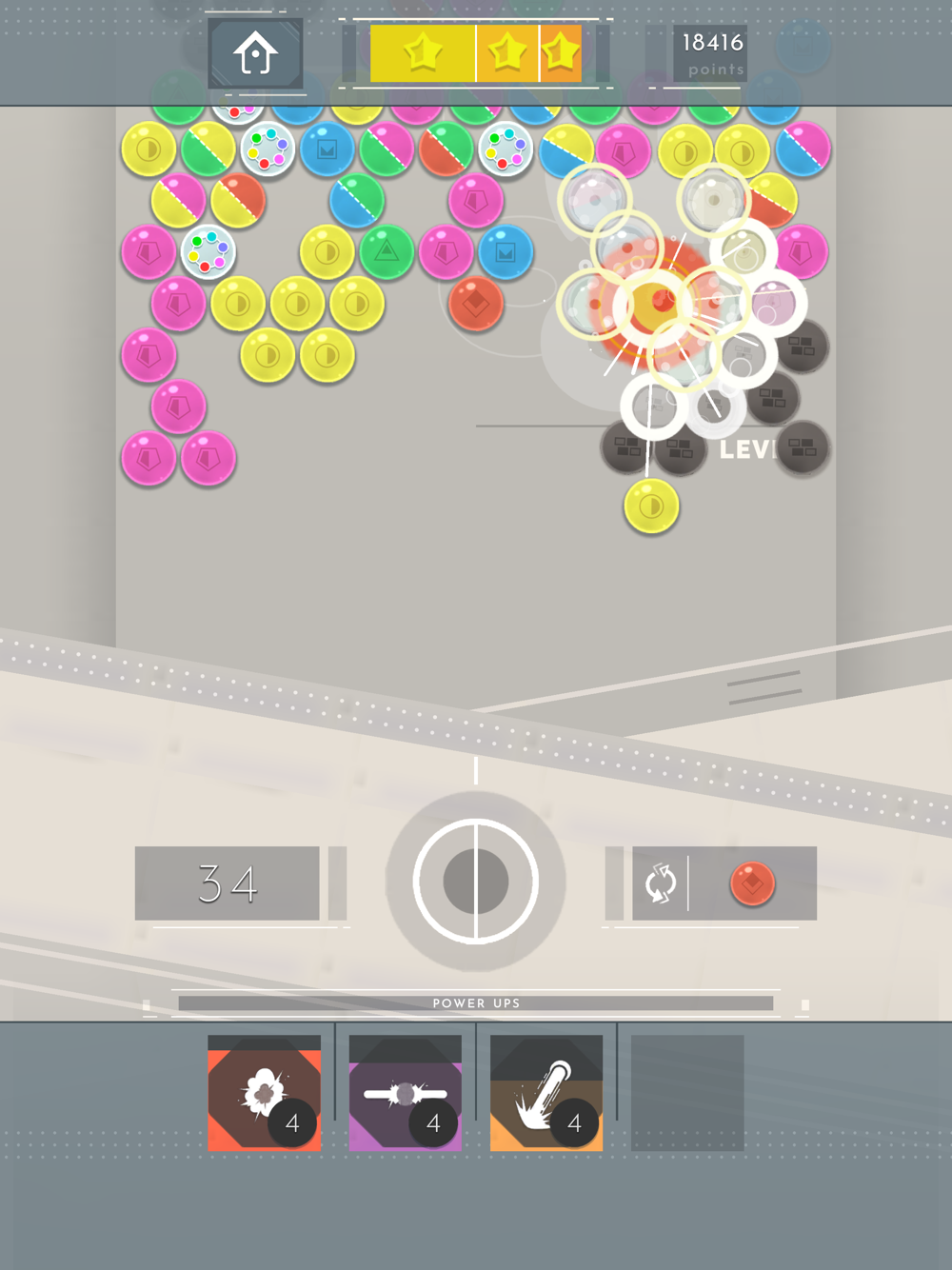 - Clear obstacles to reach the colored bubbles