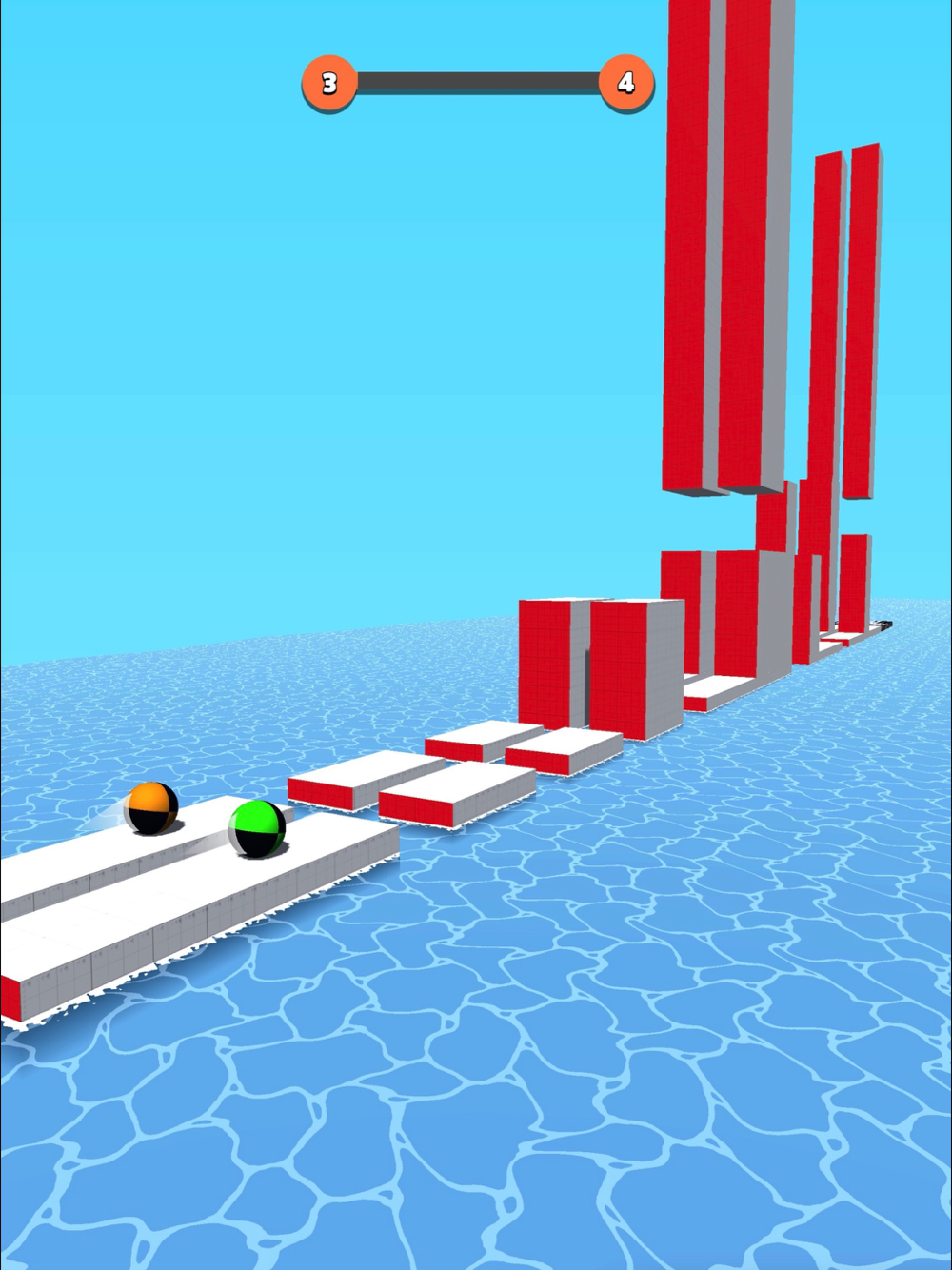 Stack pillar to fall ball right where you want! Be the first to make it to the finish line!