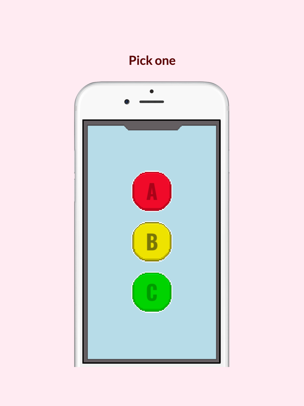 Pick One is a luck based memory game, with a casual style and several challenges that go beyond random choices. Choose between colors, cards, drinks, directions and many more, repeat sequences and identify the order of the steps in more than 30 challenges that will make your time pass quickly. Test your luck, your memorization skills and challenge your friends!
