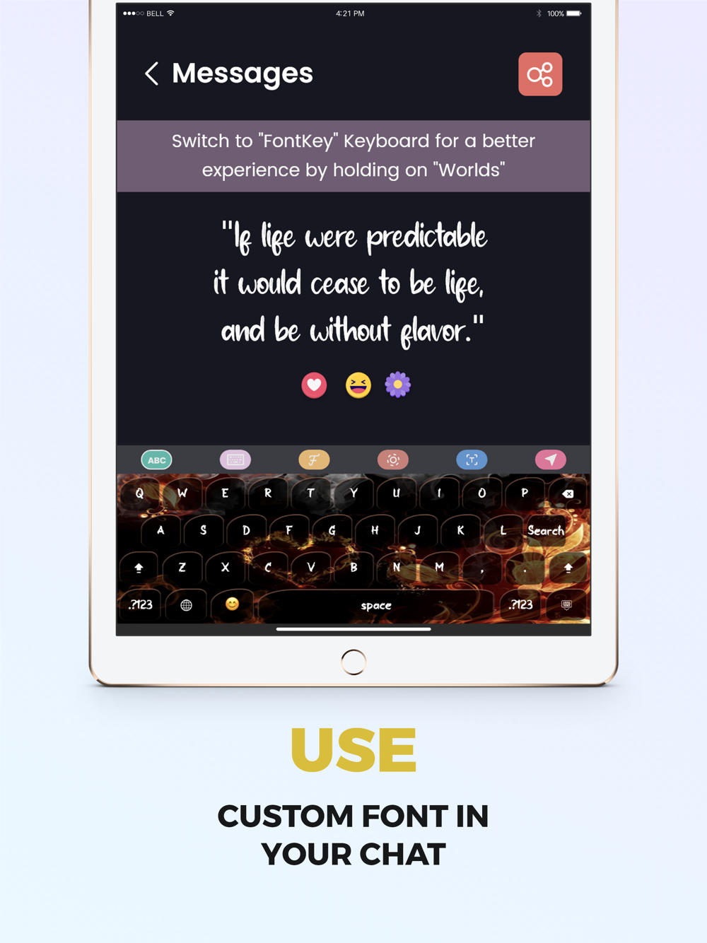 Stylish Font Keyboard is a copy and paste font generator and font changer that makes your Twitter, Facebook, Snapchat, Instagram profile, stories and posts stand out with custom amazing fonts and emojis. It converts a normal text to different free cool fonts styles. It also includes a premium keyboard you can use in any app.