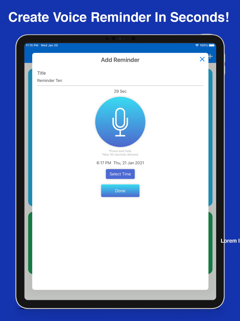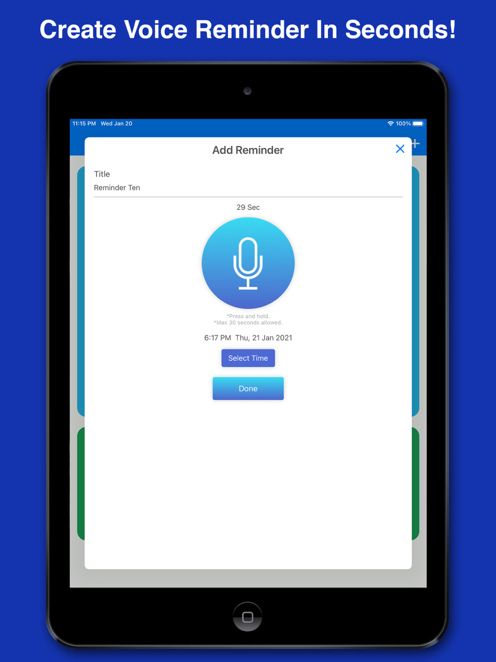 No need to type long description for your reminder now you just record the voice memo and app will play as a notification sound.