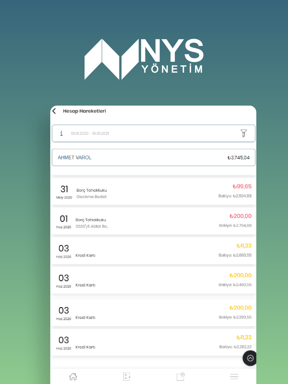 • Cari Hesap Hareketleri; bölümünüze yapılan tahakkukları , güncel borç durumunu ve geçmiş dönemde gerçekleşen ödemelerinizi görüntüleme,