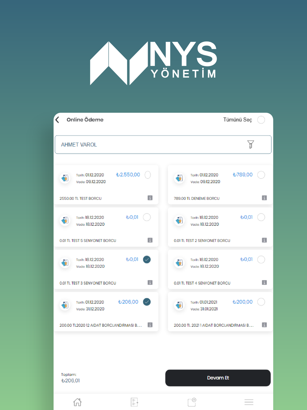 • Online Ödeme; Aidat, Isınma, Yatırım, Sıcak su vb. gibi gider kalemlerine ilişkin tutarları görüntüleme ve kendi Site Yönetimi Hesabınız ile ödemelerinizi kolayca gerçekleştirebilme,